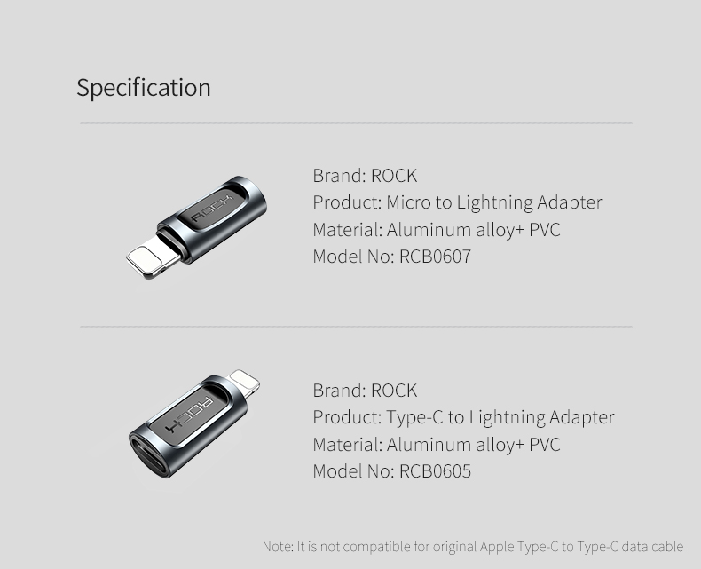 Adapter chuyển đổi Lightning to usb C Rock RCB0605
