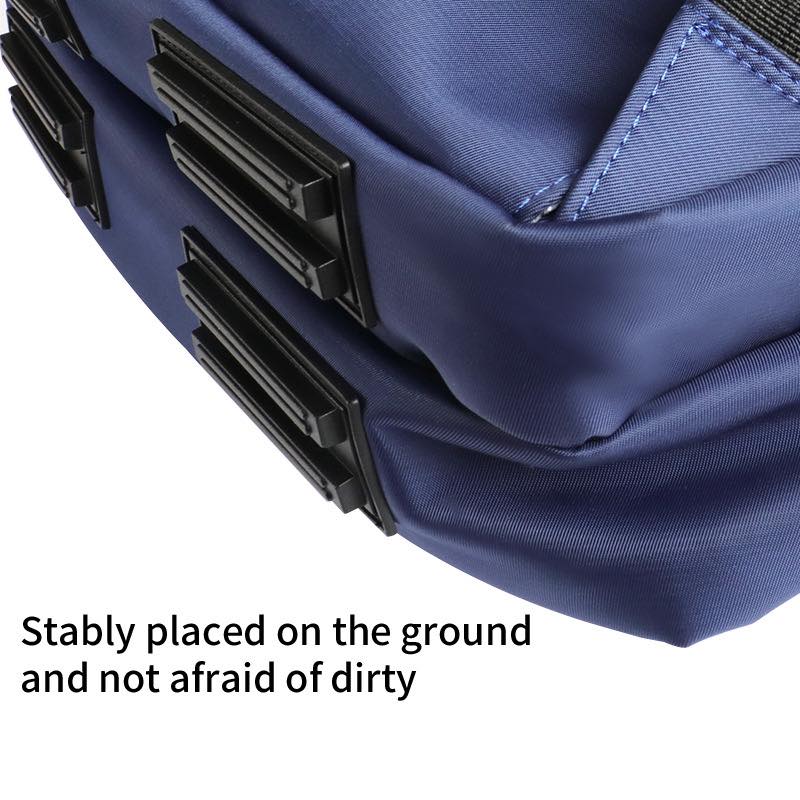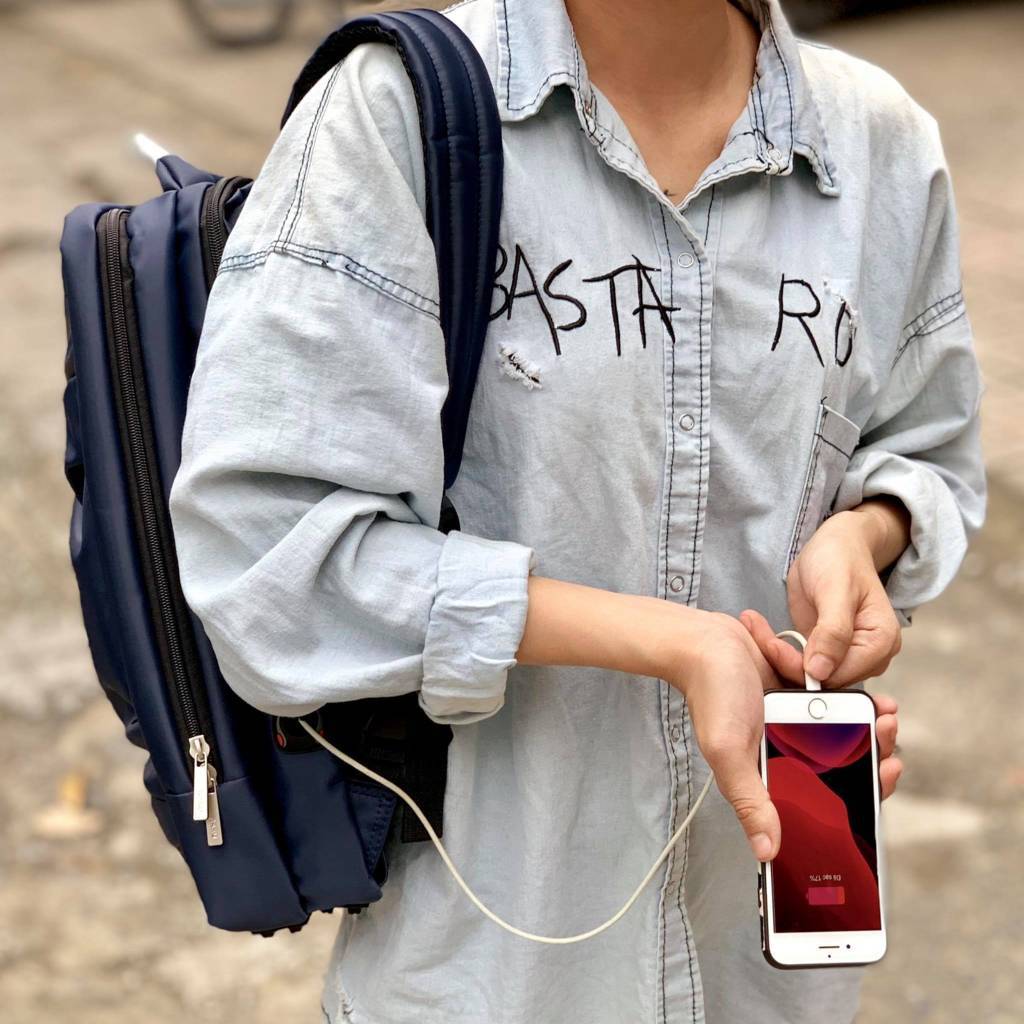 - Tích hợp 4 chân chống bẩn phía dưới túi. Thông minh hơn vì túi có thêm 1 lỗ để luồng dây sạc ra ngoài để sạc điện thoại từ sạc dự phòng bên trong.