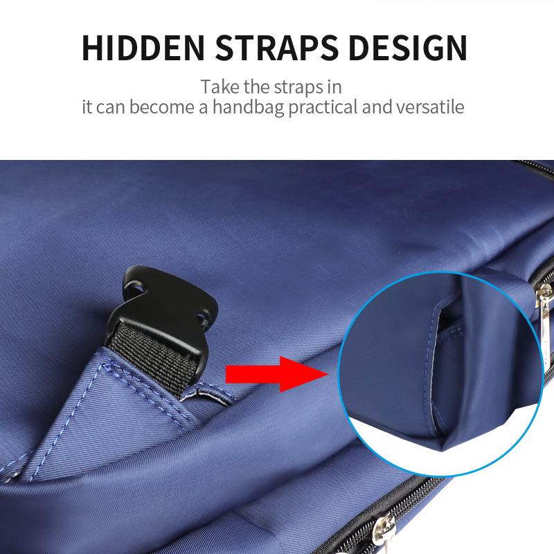 - Hai quai đeo được giấu ẩn phía bên ngăn trong tiện lợi 2 in 1 (vừa có thể làm túi xách balo, vừa có thể làm balo).
