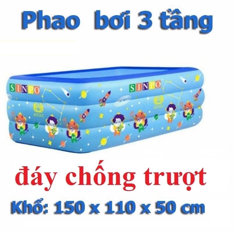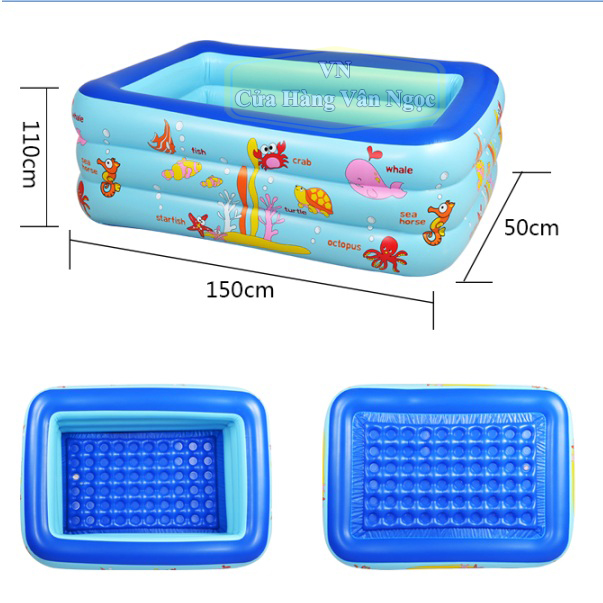 Bể bơi 3 tầng 150x105x55 cm Tặng kèm bơm hơi điện cao cấp.