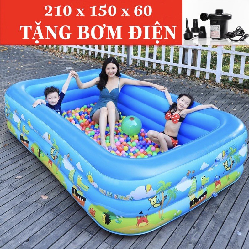 Bể bơi 3 tầng 210x150x60 cm Tặng kèm bơm hơi điện cao cấp.