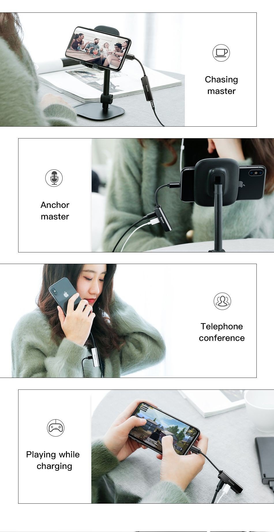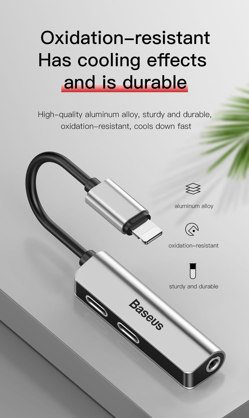 Tính năng cơ bản Bộ chuyển cổng Lightning sang Dual Lightning + Audio AUX 3.5mm Baseus L52 cho iPhone/ iPad.