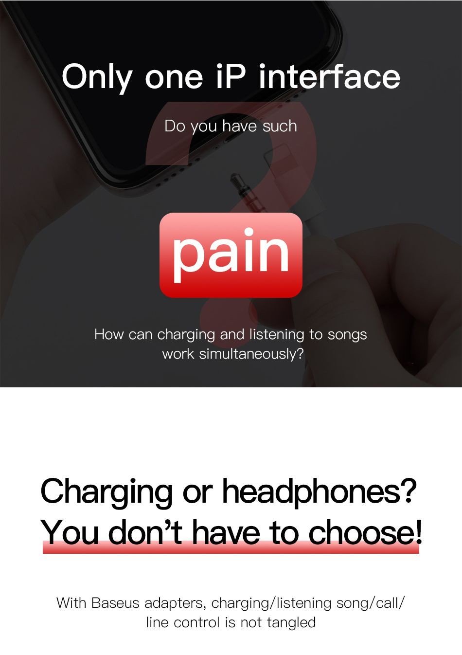 Baseus L52 là phiên bản kết hợp và nâng cấp mới nhất của dòng L42 và LV37 - Giải pháp vừa nghe nhạc vừa sạc pin trên iPhone (chuyển đổi và mở rộng cổng Lightning ra thành 2 cổng Lightning và cổng Audio AUX 3.5mm) là phiên bản nâng cấp đáp ứng sự mong đợi này của người dùng với khả năng kết nối và xuất âm thanh cổng Lightning, có hỗ trợ đàm thoại cổng Lightning.