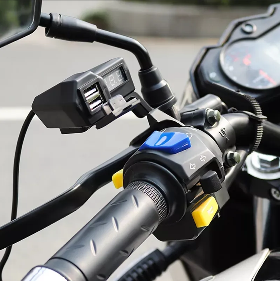Bộ sạc điện thoại gắn xe máy 2 cổng USB có màn hình LED