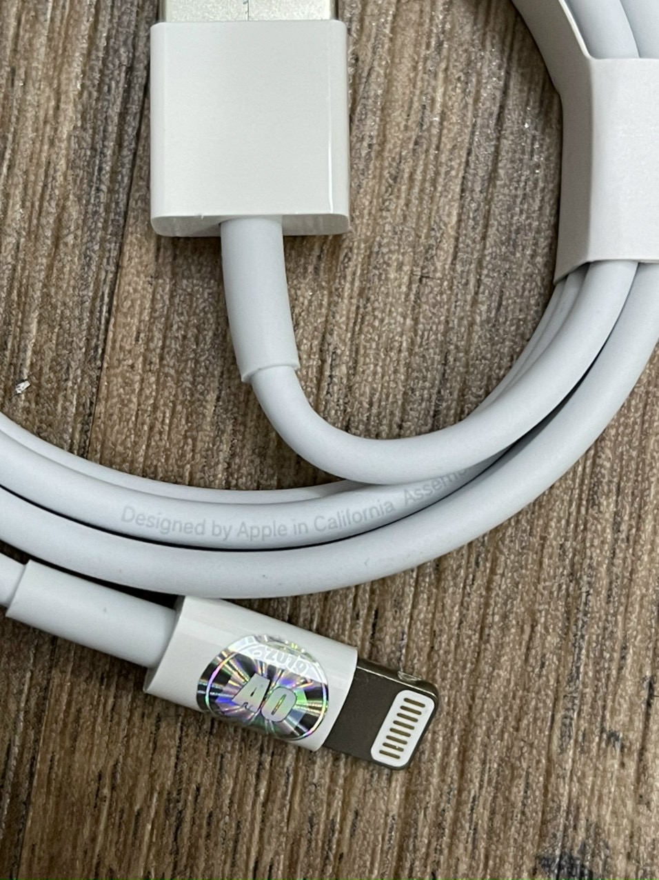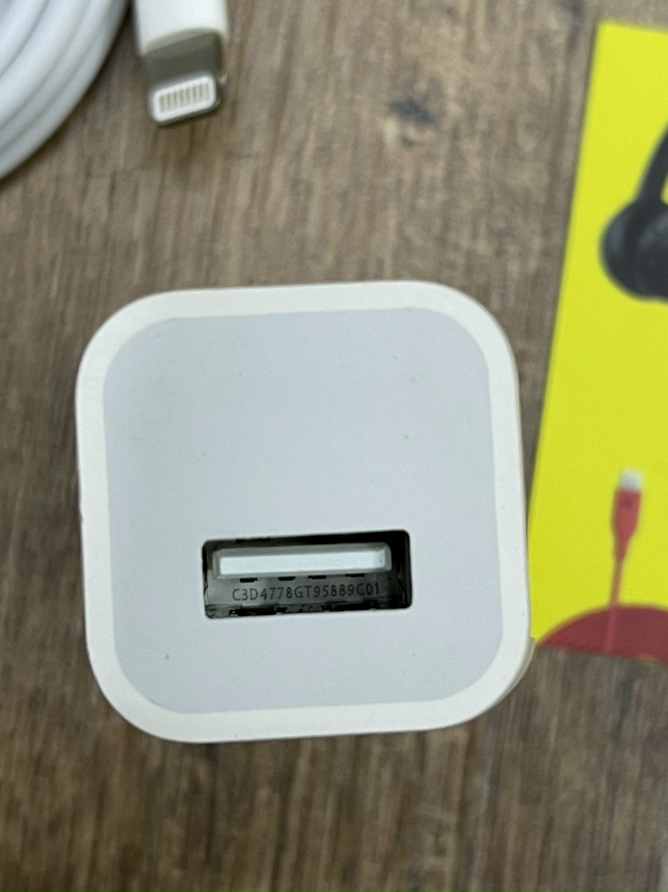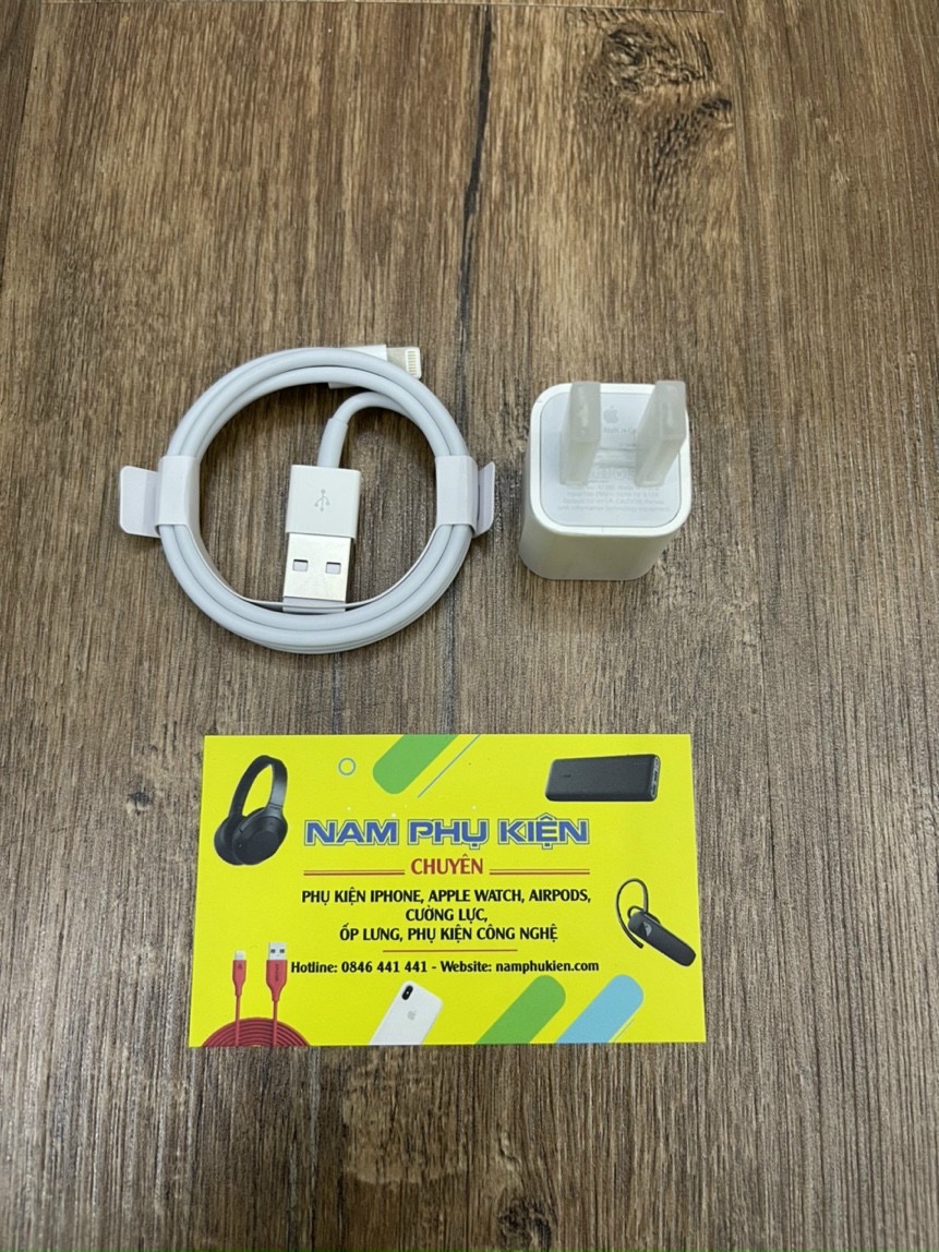 Hình ảnh thực tế bao gồm củ sạc 5W và cáp Lightning tại shop