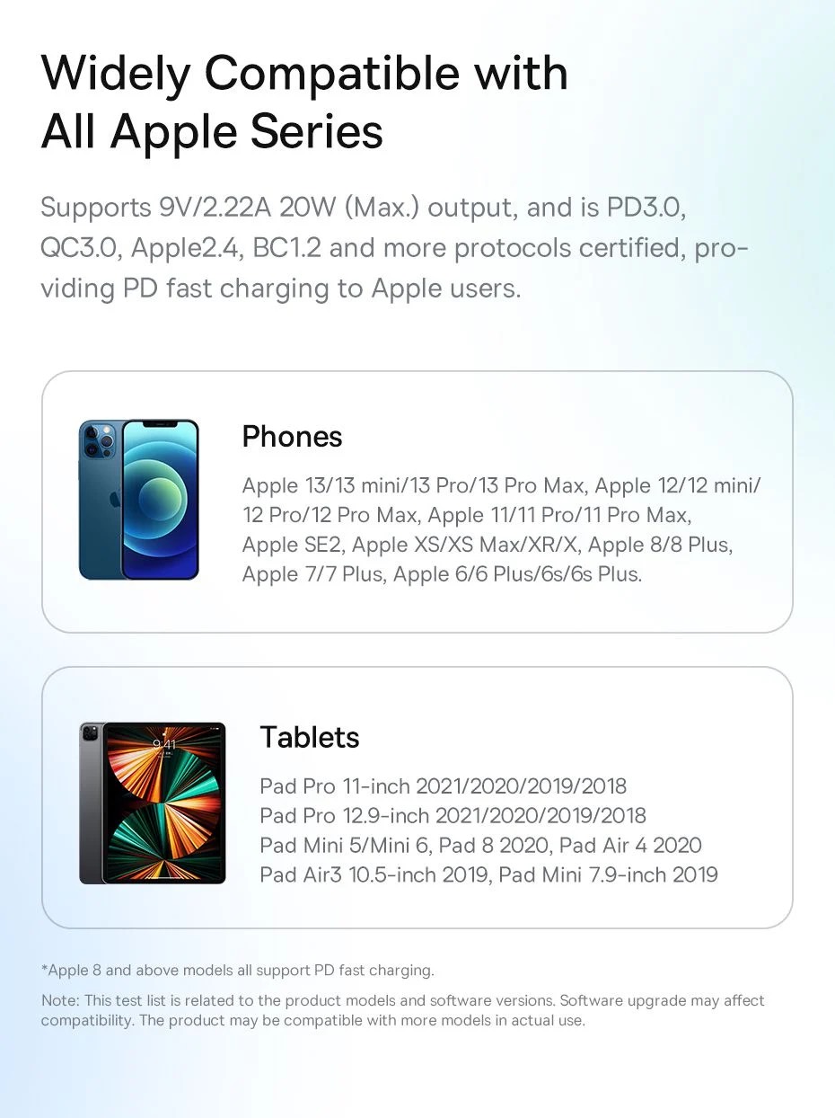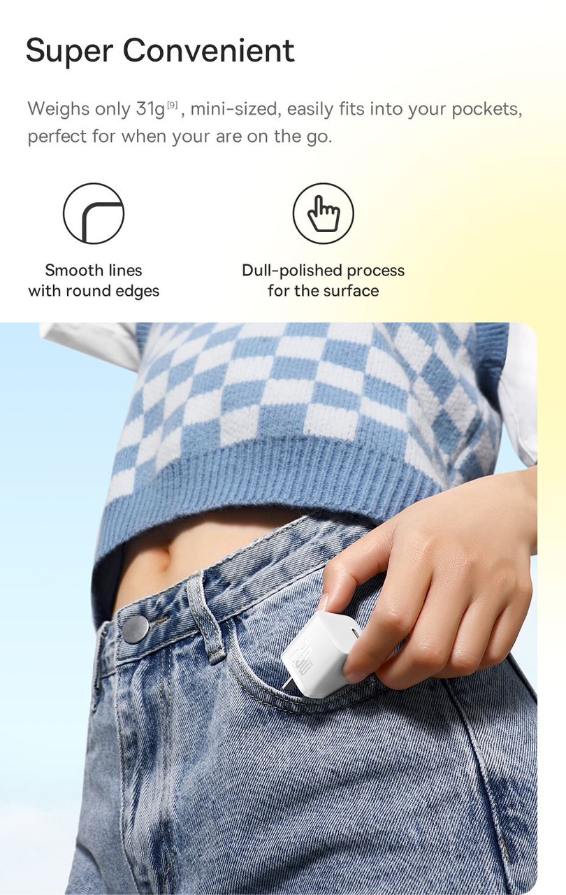 - Công nghệ xếp chồng cấu trúc cải tiến làm cho lớp vỏ của linh kiện nhỏ gọn và chặt chẽ hơn. Kích thước giảm 50% , mật độ năng lượng tăng 76%, mà không làm ảnh hưởng đến công suất đầu ra và hiệu suất làm mát. Sạc siêu nhanh 20W tăng tốc độ cho điện thoại Apple , tương thích với các dòng iPhone từ 8 - 13 , sạc tới 50% trong vòng 26 phút.