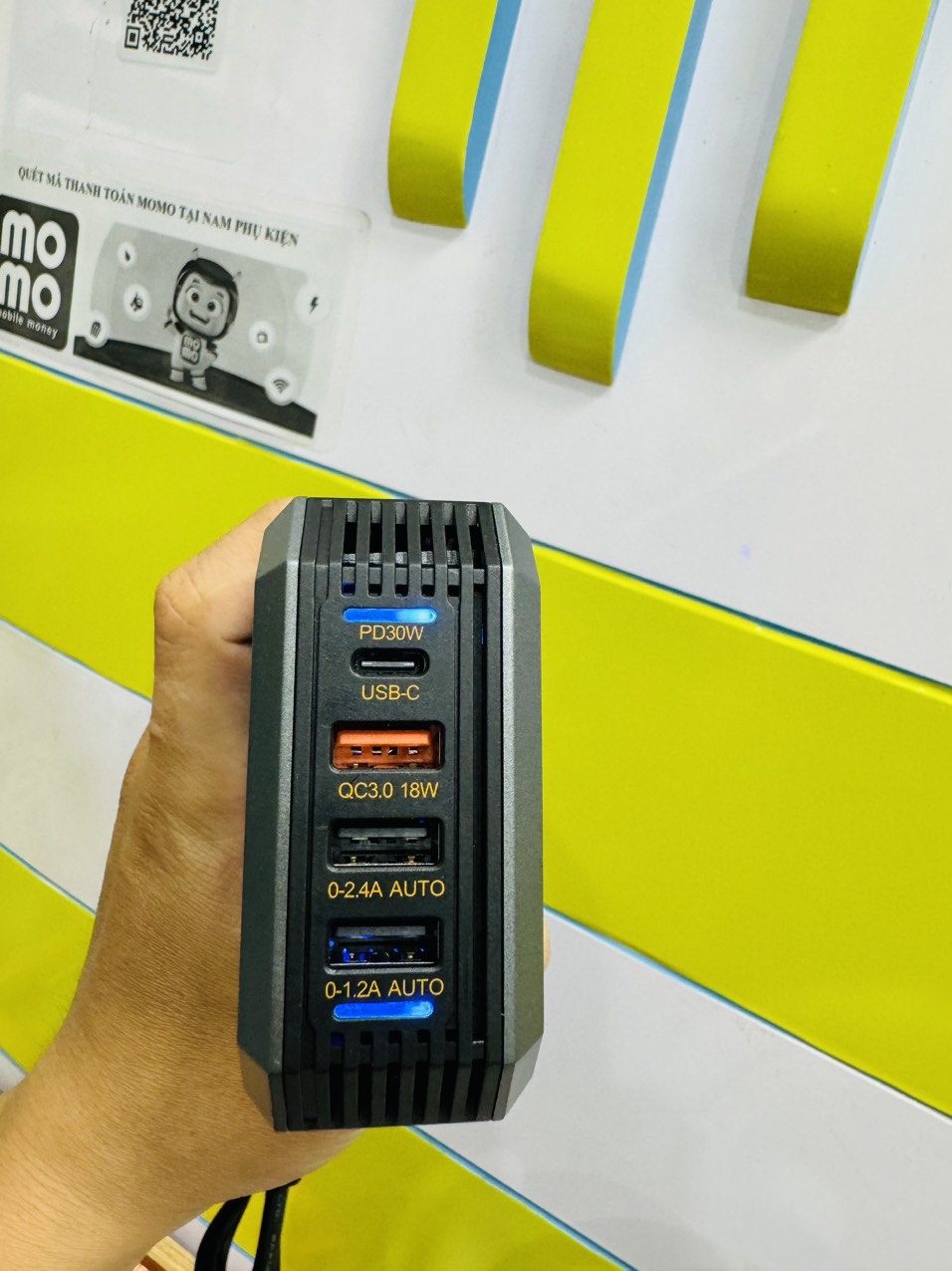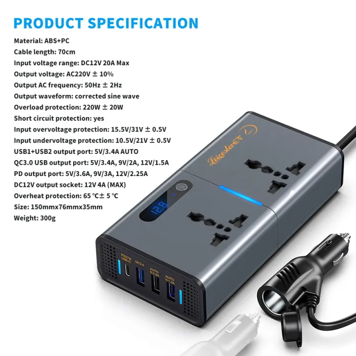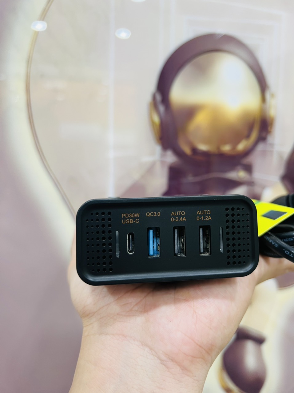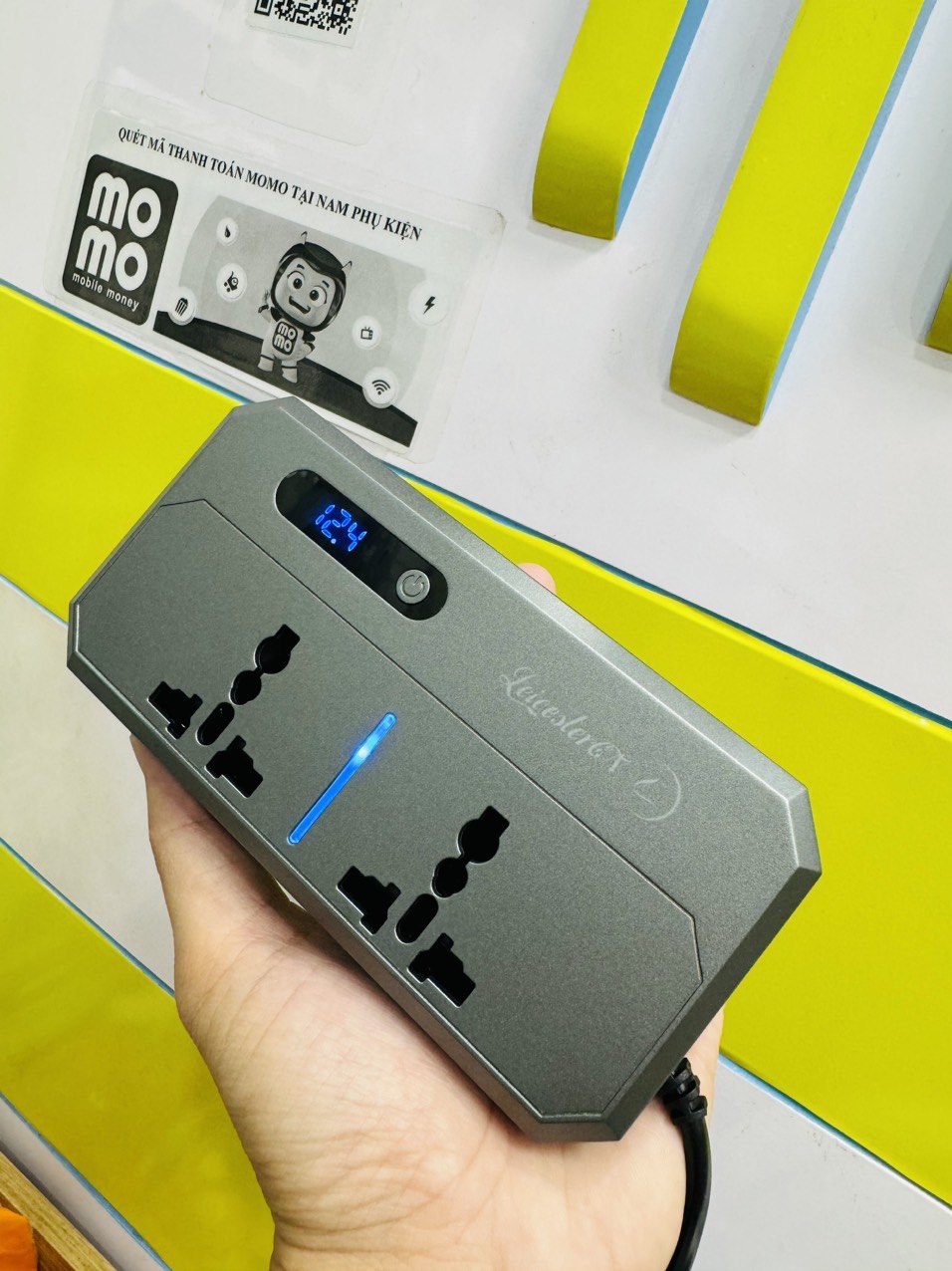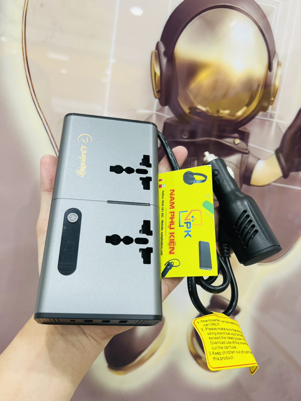 - Bộ đổi nguồn/Biến tần 12v/24v sang 220V AEMEKU chia ra 01 công tẩu, 02 cổng 220v thiết kế chống giật, 01 công sạc nhanh PD công suất 27W, 01 cổng USB sạc nhanh 3.0 và 02 cổng sạc USB giúp bạn kết nối nhiều thiết bị cùng lúc. Sản phẩm tích hợp quạt tản nhiệt duy trì nhiệt độ ổn định cho thiết bị.