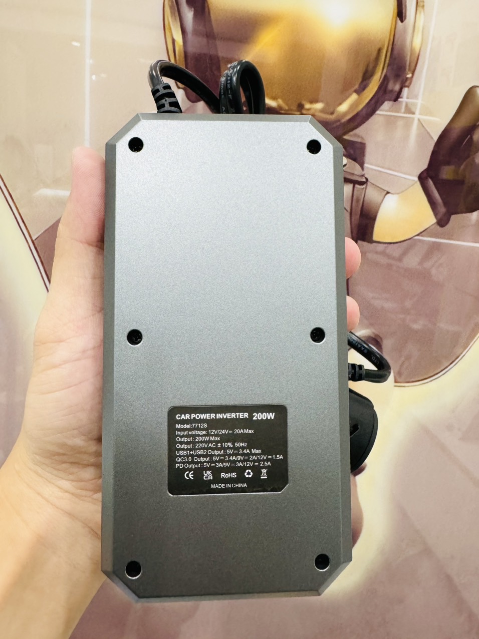 Tuyệt đối không lạm dụng bộ đổi nguồn này để sử dụng các thiết bị đòi hỏi công suất cao hơn 200W. Ví dụ như : ấm siêu tốc, máy mài, máy khoan...