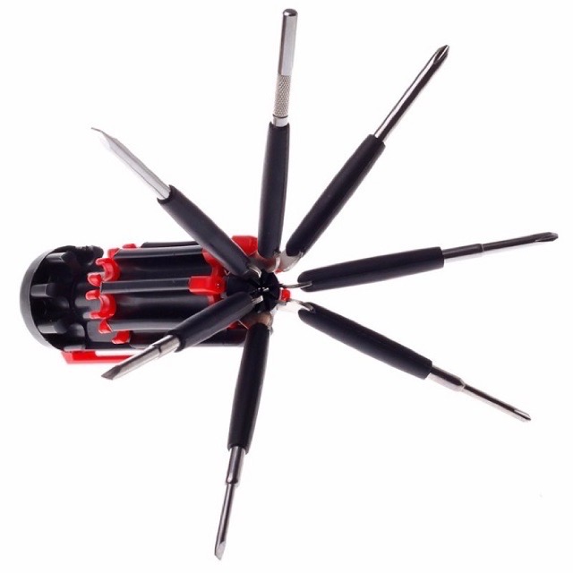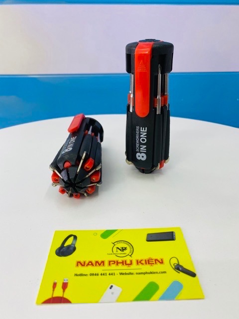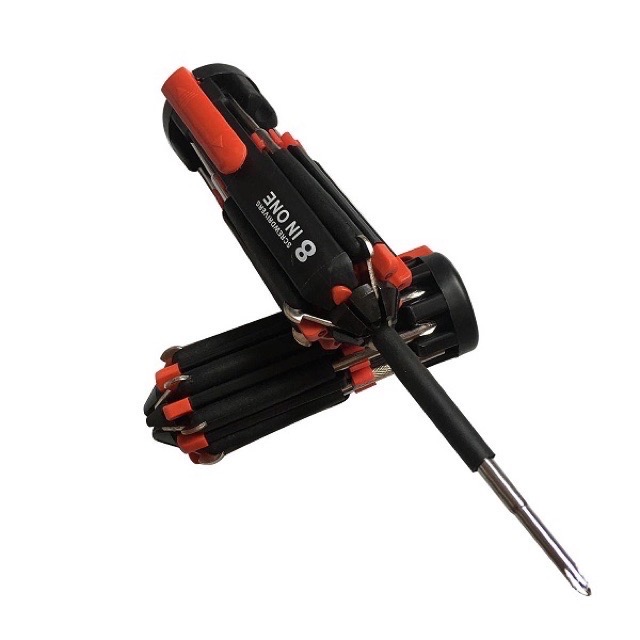 - 8 đầu vít thông dụng nhất được tích hợp trên 1 thiết bị, ngoài ra còn có thêm đồ gài để dễ dàng móc vô thắt lưng, tiện việc mang theo để sửa chữa. Chất liệu làm bằng hợp kim thép cao cấp, giúp cho đầu vít cứng cáp và an toàn khi sử dụng.