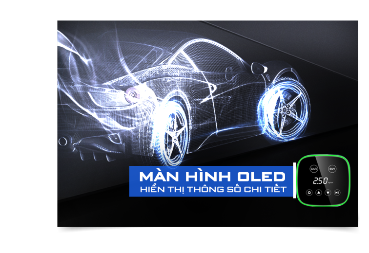 Mặt trước có thiết kế màn hình OLED hiển thị chi tiết thông số, hỗ trợ quan sát tốt ngay trong điều kiện thiếu ánh sáng.