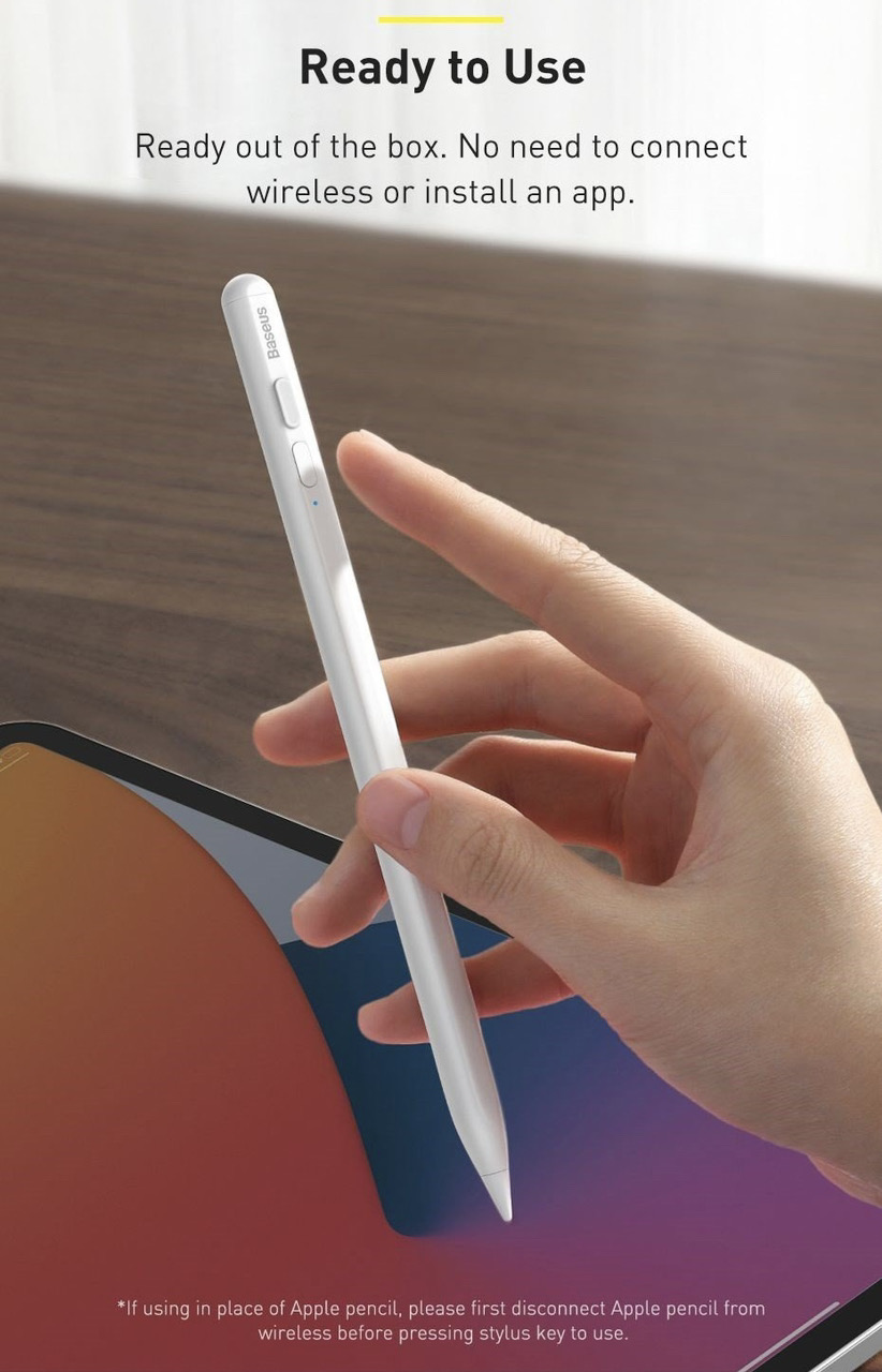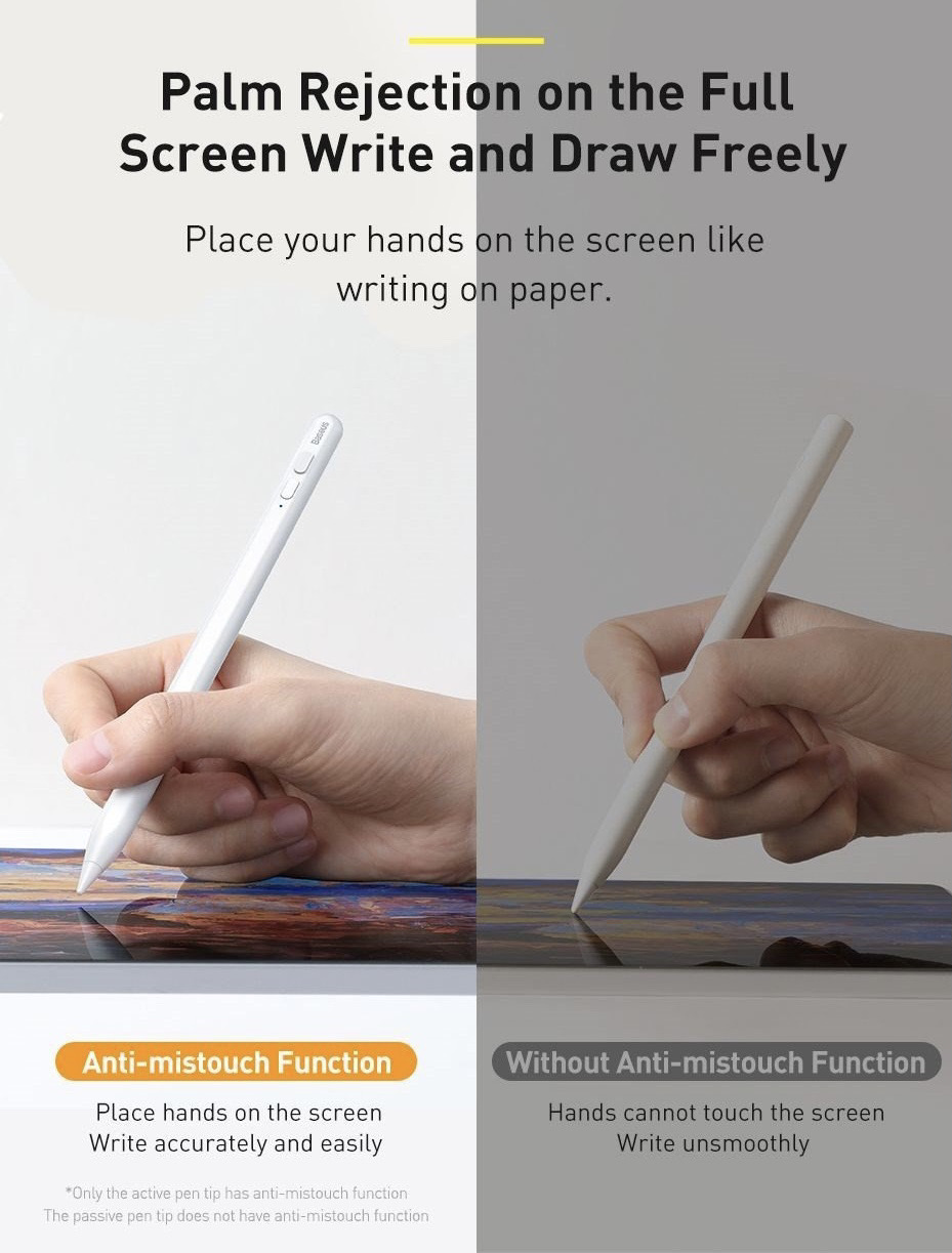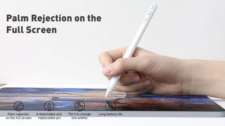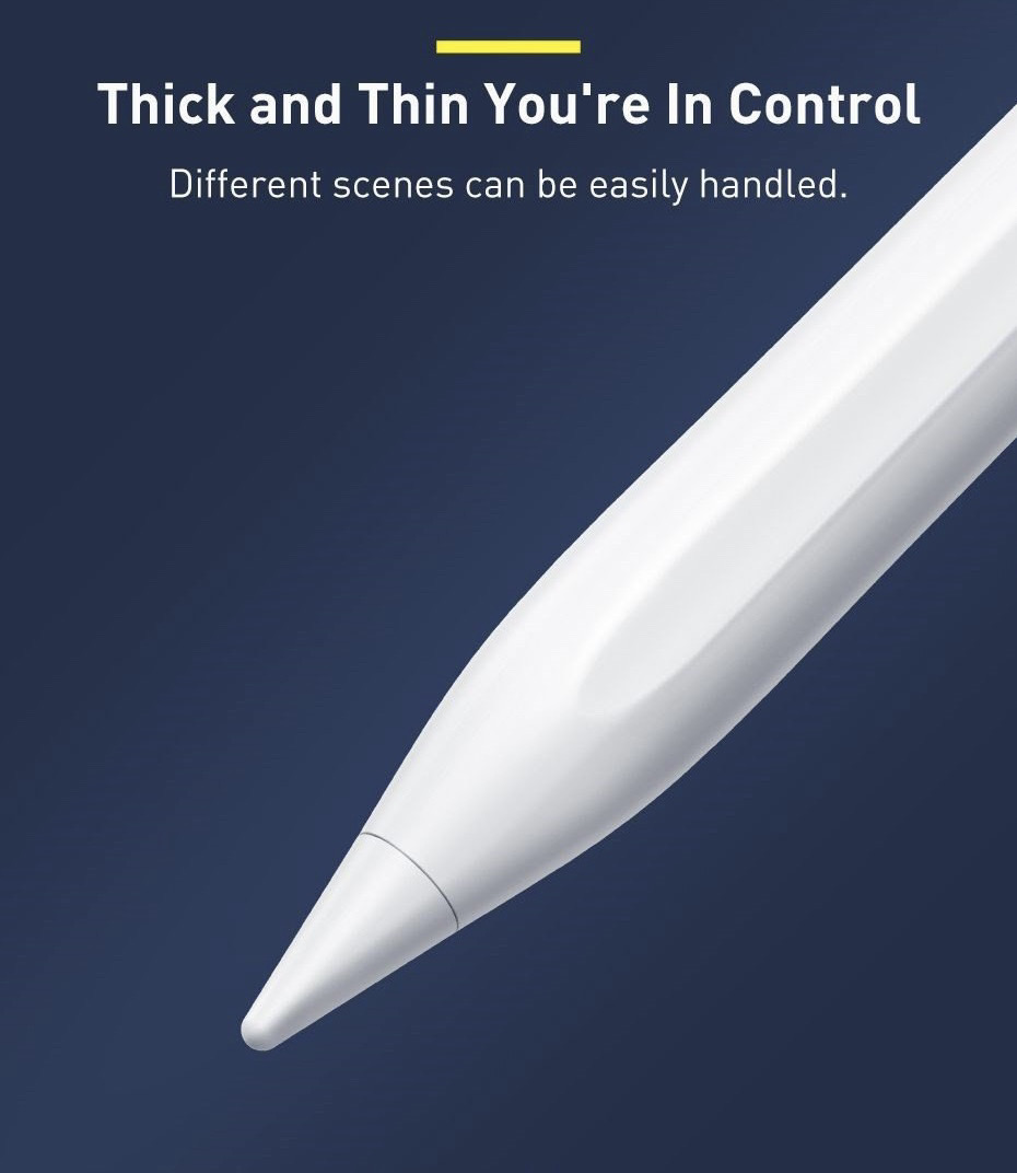 - Baseus Smooth Writing Capacitive Stylus được thiết kế chuyên dụng cho màn hình iPad Pro và các smartphone/ Tablet Android (Plus Version), khi sử dụng iPad có thể nhận diện và phân biệt được đâu là ngòi bút và đâu và tay của bạn. Công nghệ này giúp cho việc sử dụng bút được thoải mái và thuận tiên hơn rất nhiều. Các bạn có thể tỳ tai thoải mái lên màn hình khi sử dụng bút (đây là điểm mình thích nhất trên cây bút này).