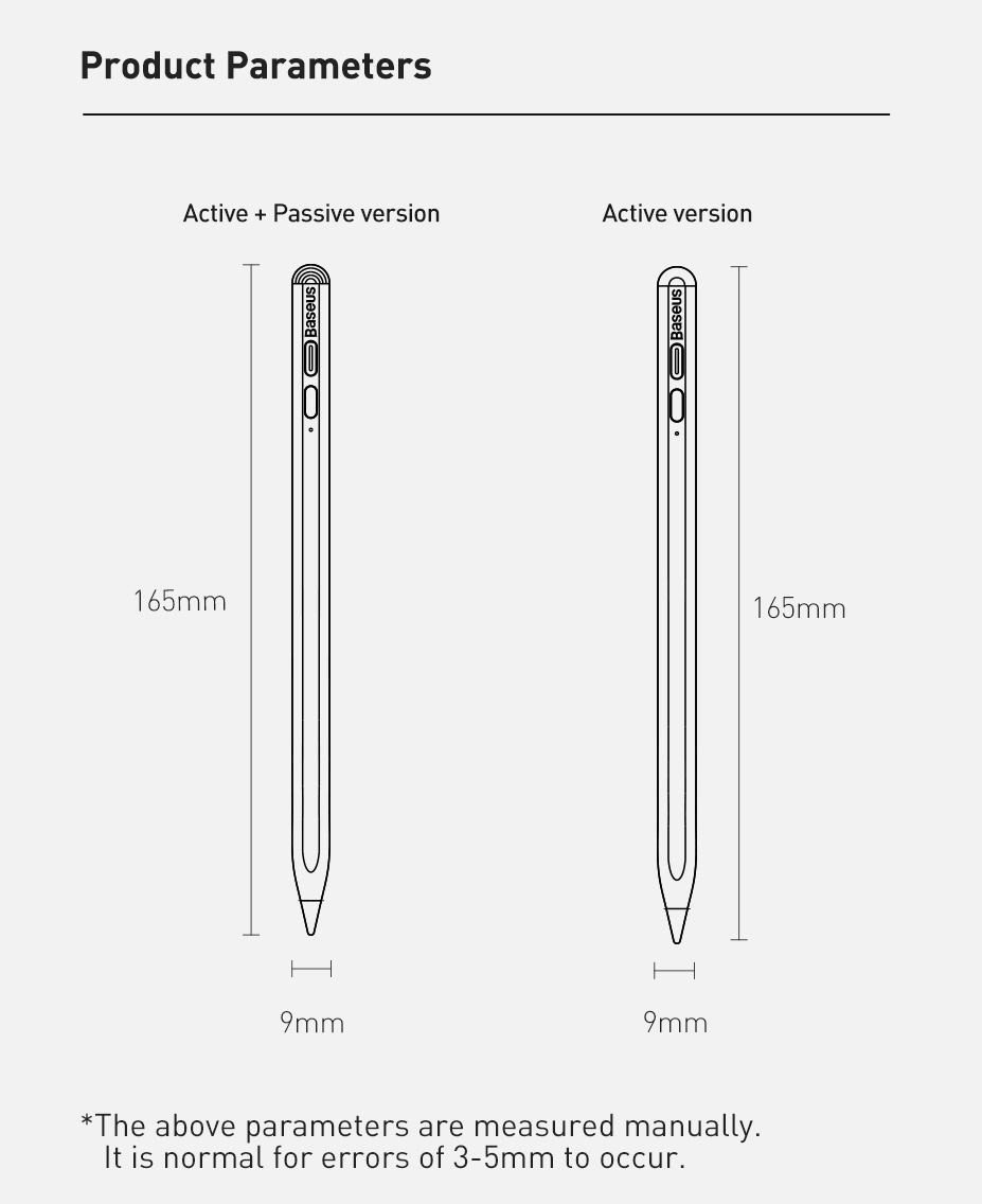Thông số kỹ thuật Bút cảm ứng Baseus Smooth Writing Capacitive Stylus dùng cho iPad Pro/ Smartphone/ Tablet Android (Active + Passive Version, Magnetic Adsorption, Tilt & Strength sensitive)