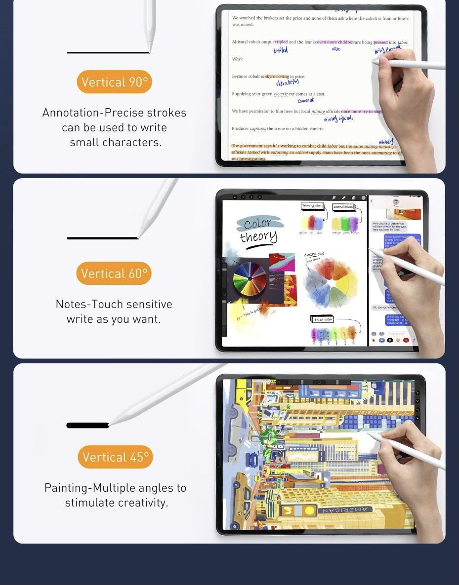 Hình ảnh chi tiết Bút cảm ứng Baseus Smooth Writing Capacitive Stylus dùng cho iPad Pro/ Smartphone/ Tablet Android (Active + Passive Version, Magnetic Adsorption, Tilt & Strength sensitive)