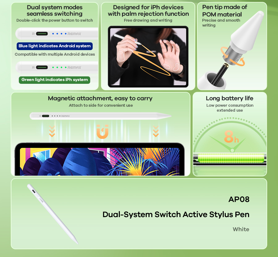 Bút Cảm Ứng REMAX AP08 Thông Minh 2 Hệ Thống Đa Năng