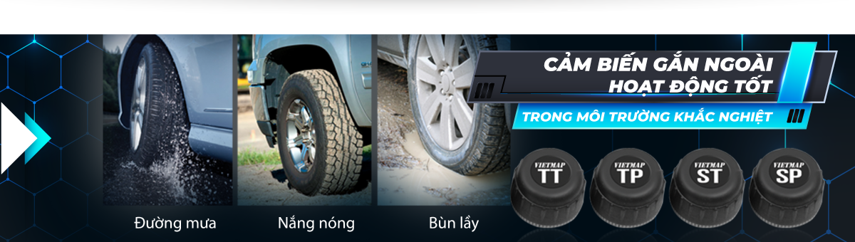 Cảm biến áp suất lốp TPMS VIETMAP V1 được thiết kế gắn trực tiếp vào van xe cùng chip xử lý thông minh Freescale công nghệ từ Đức với khả năng chống nước IP67 giúp bộ cảm biến hoạt động dưới mọi điều kiện thời tiết kể cả nắng nóng, trời mưa hay bùn lầy.