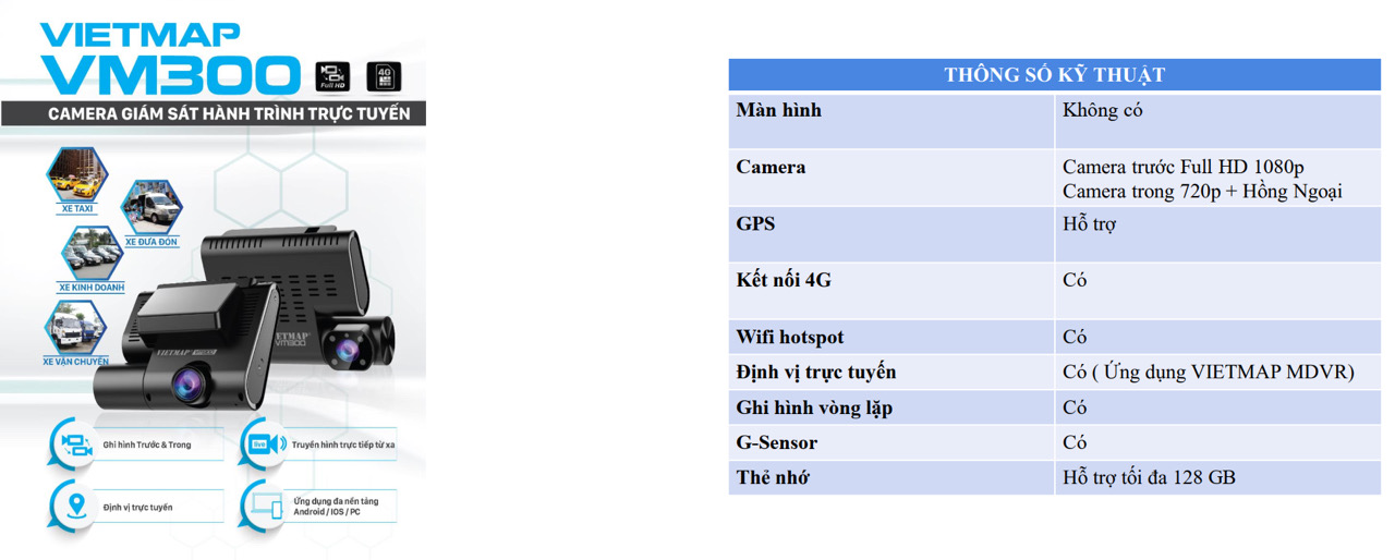 Hệ thống camera giám sát hành trình trực tuyến VIETMAP VM300
