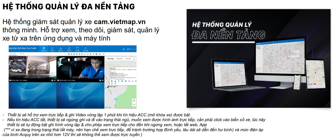 Hệ thống giám sát quản lý xe cam.vietmap.vn thông minh. Hỗ trợ xem, theo dõi, giám sát, quản lý xe từ xa trên ứng dụng và máy tính