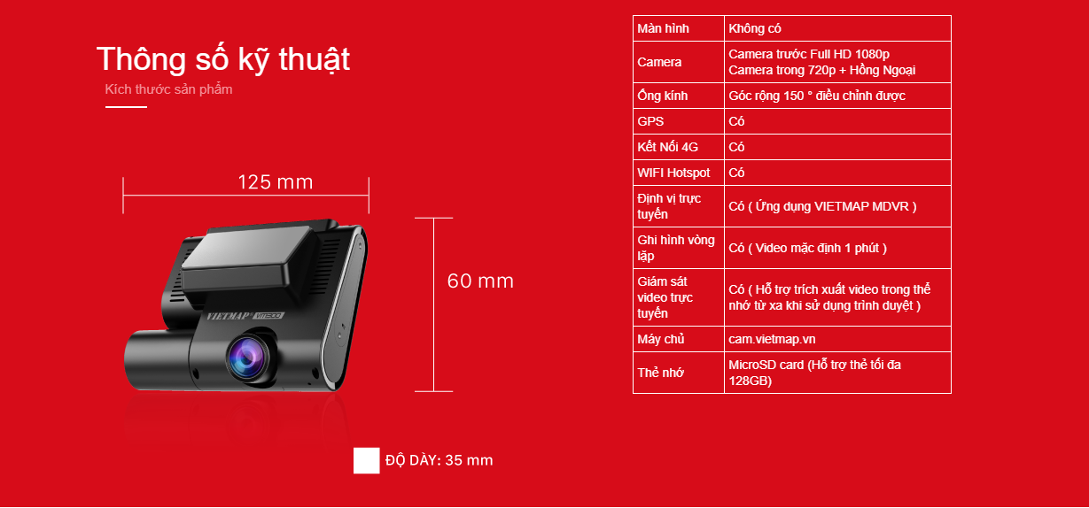 VIETMAP VM300 được trang bị ống kính F2.0 với độ phân giải Full HD 1080p, ghi lại toàn cảnh hành trình trước xe rõ nét. Thiết bị đồng thời tích hợp camera hồng ngoại phía trong hỗ trợ chụp ảnh - ghi hình trong xe cùng lúc.