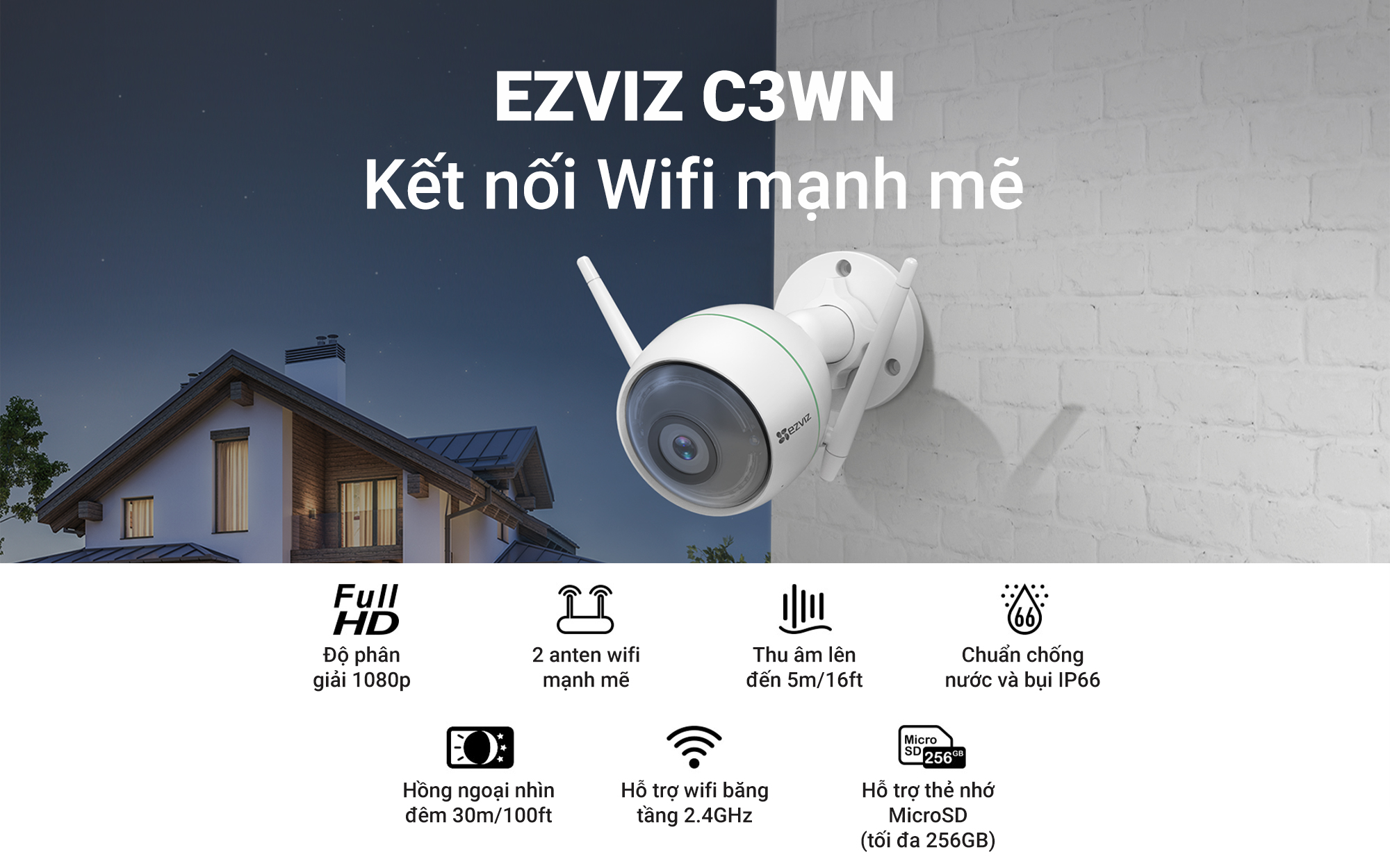 Camera ngoài trời EZVIZ C3WN (HD1080P) dễ lắp đặt – Phù hợp cho gia đình bạn