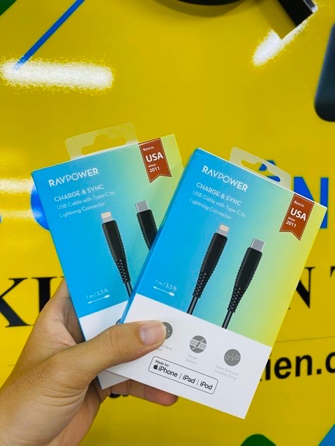 - Cáp Type-C ra Lightning Ravpower CB020, được chứng nhận MFI bởi Apple.