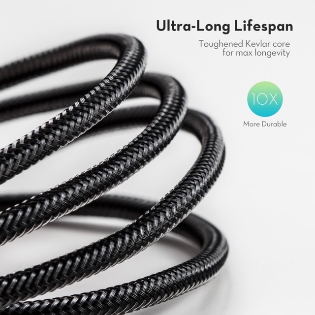 - Cáp bện nhiều lớp & lưới và thiết kế đầu cáp linh hoạt đảm bảo độ bền cao hơn, cũng như kiểu dáng thời thượng