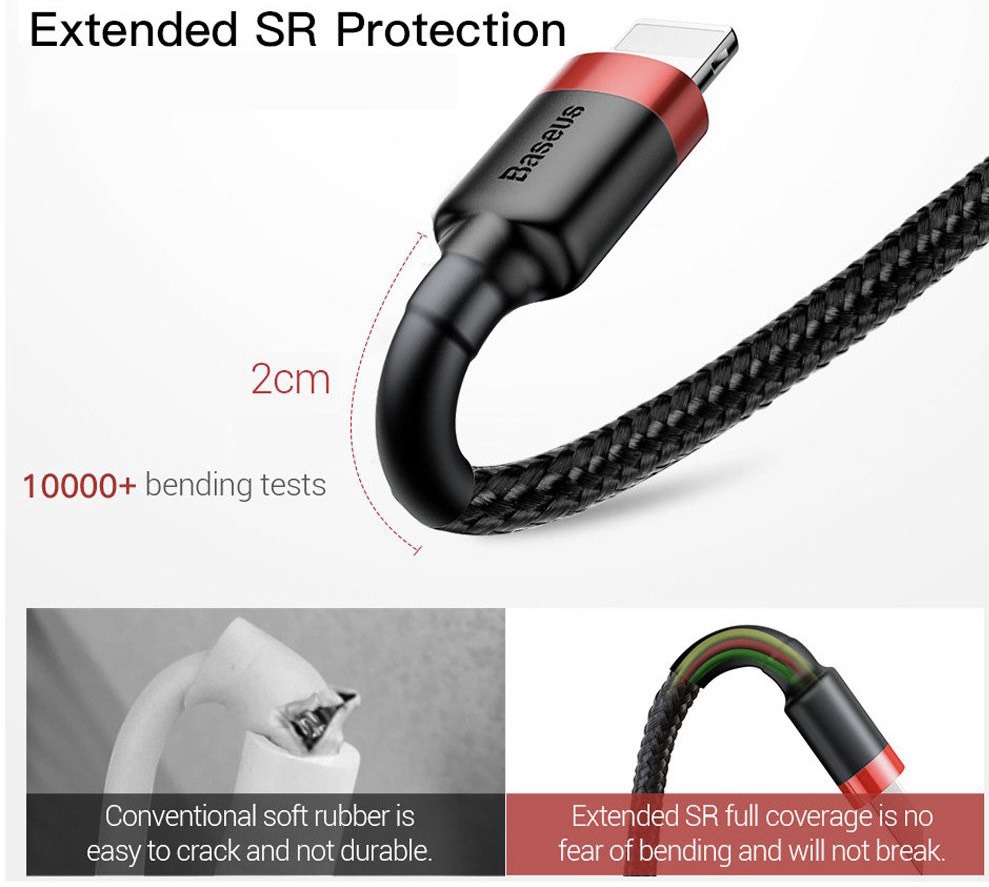 Tính năng cơ bản Cáp sạc và truyền dữ liệu tốc độ cao Baseus Cafule Data Lightning cho iPhone/iPad( 2.4A, Fast Charing)