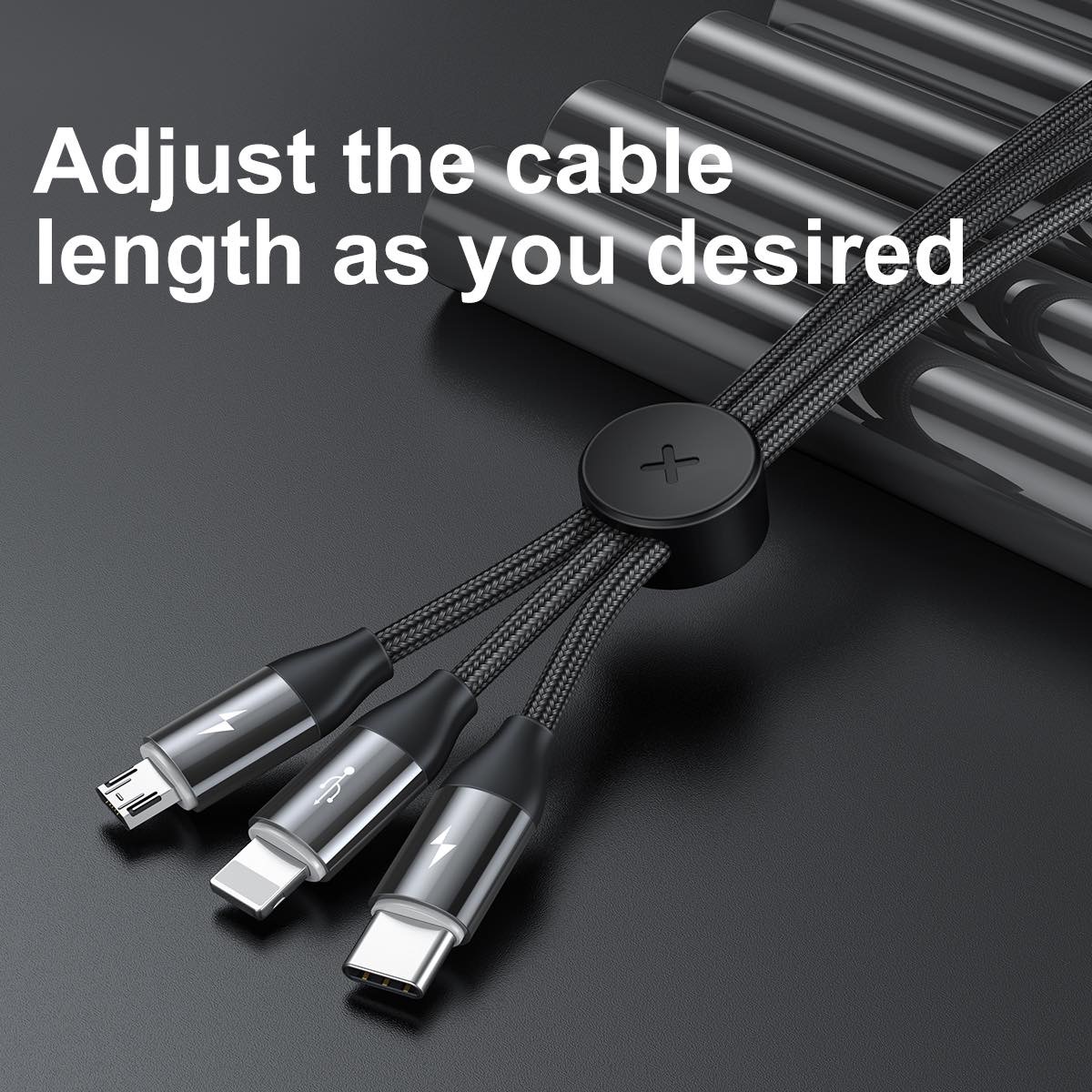 - Bạn có thể tuỳ chỉnh độ dài 3 đầu dây sạc nhờ thiết kế dây rút đa năng.