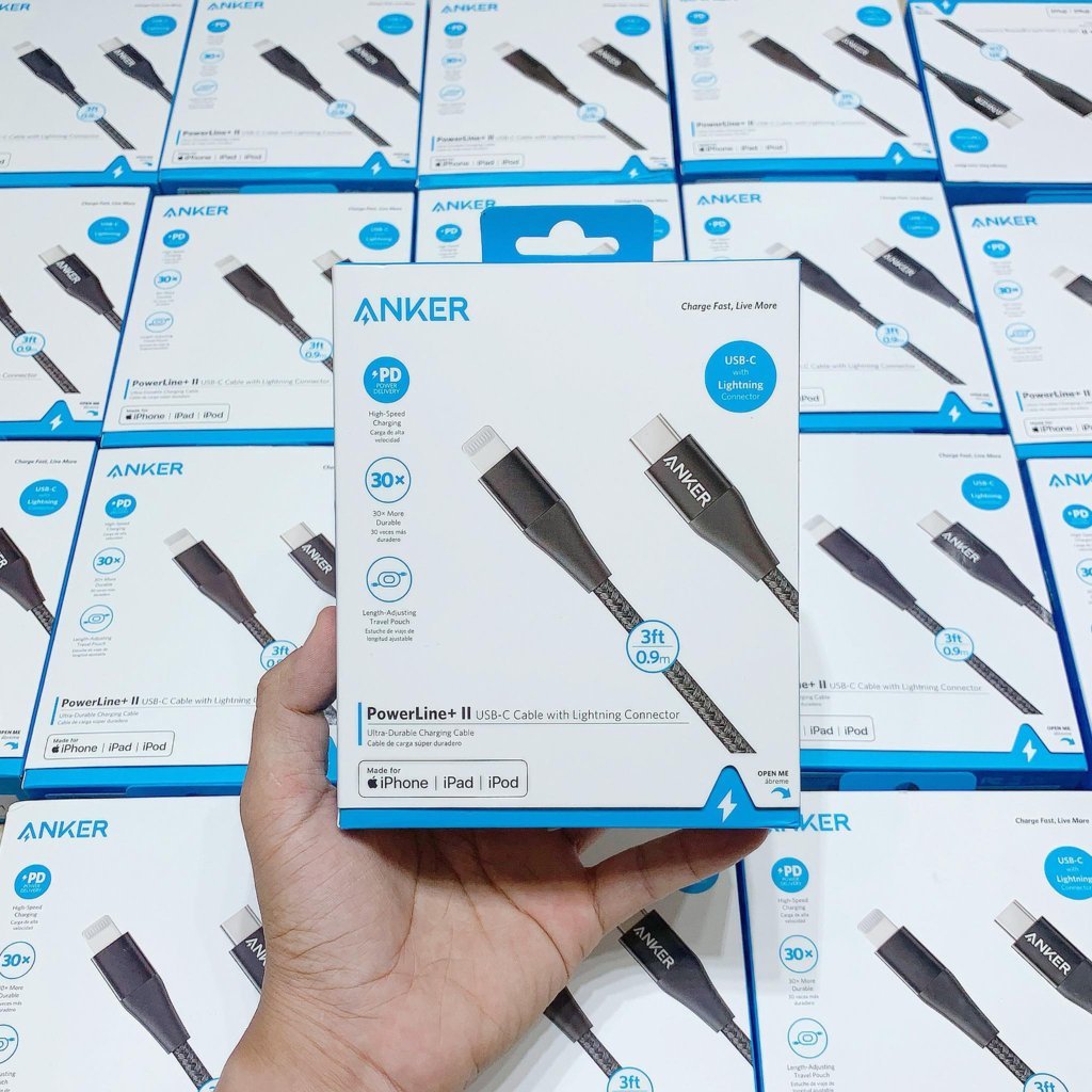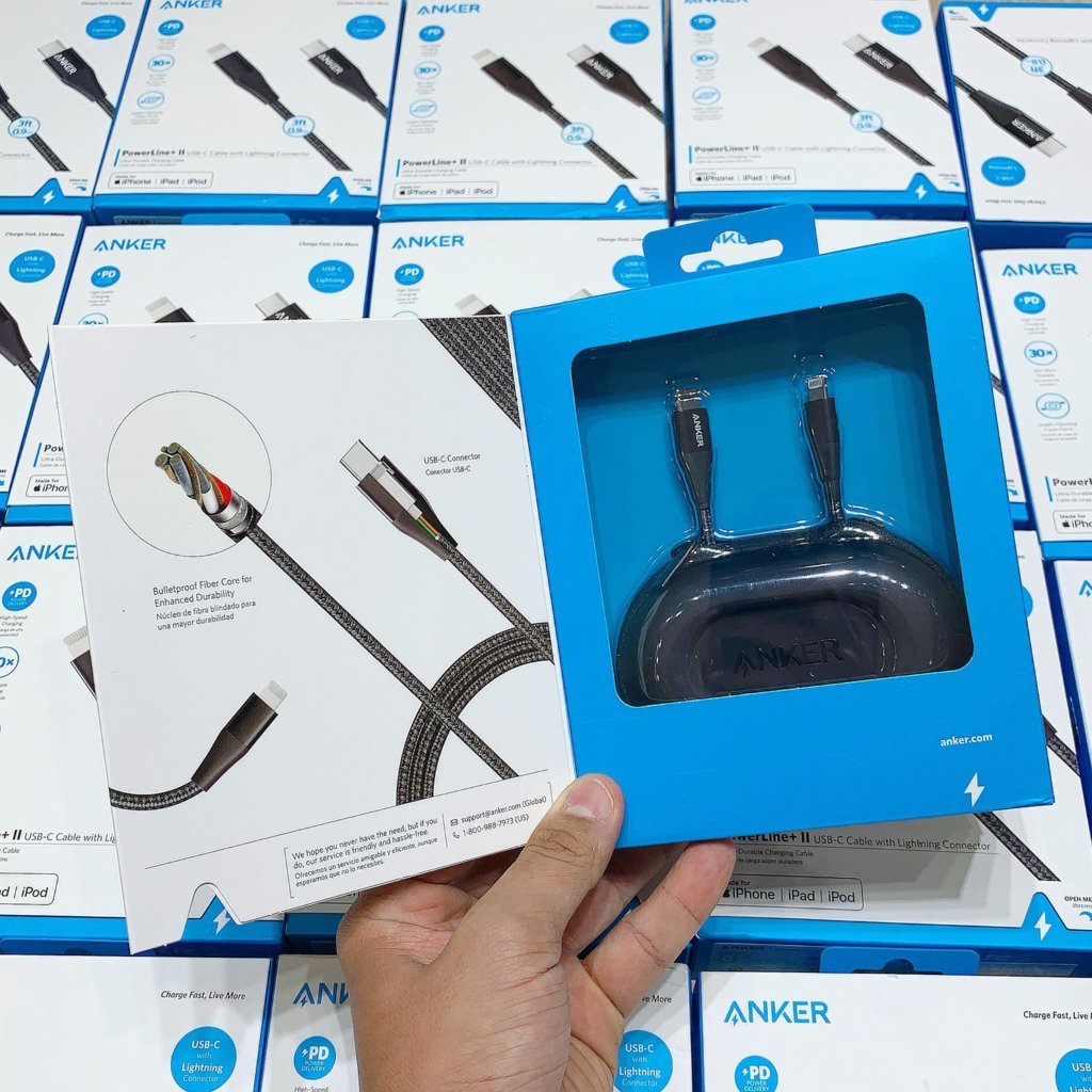 Cáp sạc ANKER PowerLine +II, cổng USB-C ra Lightning A8652 (sạc nhanh cho iPhone, iPad) phiên bản màu đen giới hạn A8652.