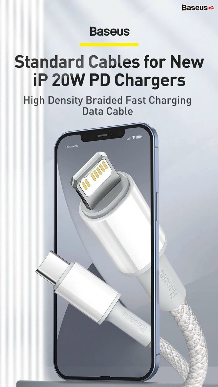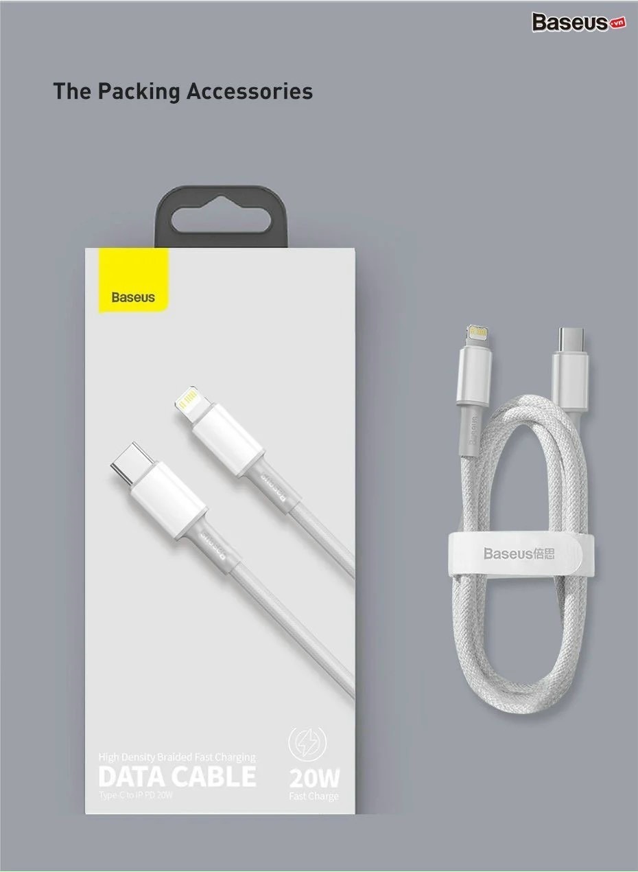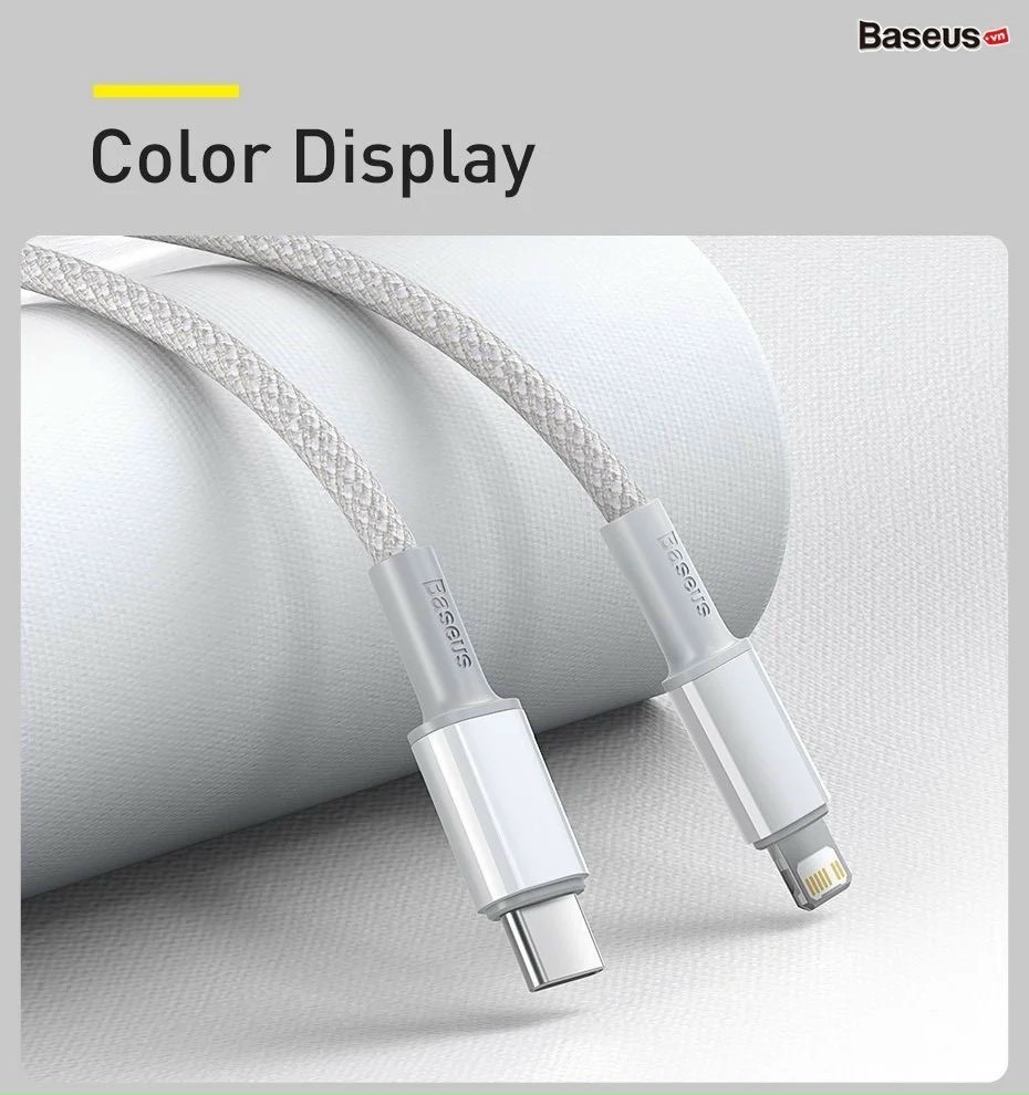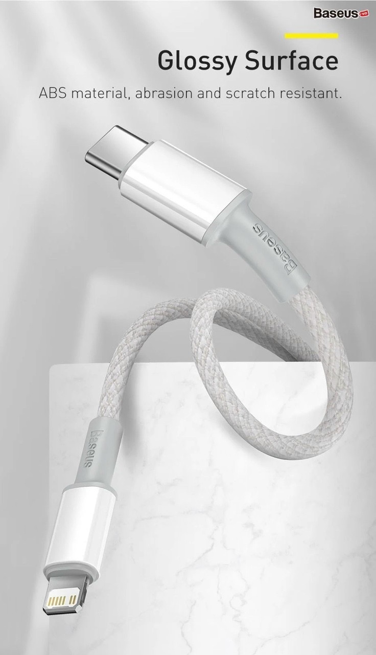 Cáp sạc nhanh Baseus High Density Braided Fast Charging Data Cable Type-C to iP PD 20W với phiên bản dây vải bện màu trắng đem lại phong cách sang trọng.