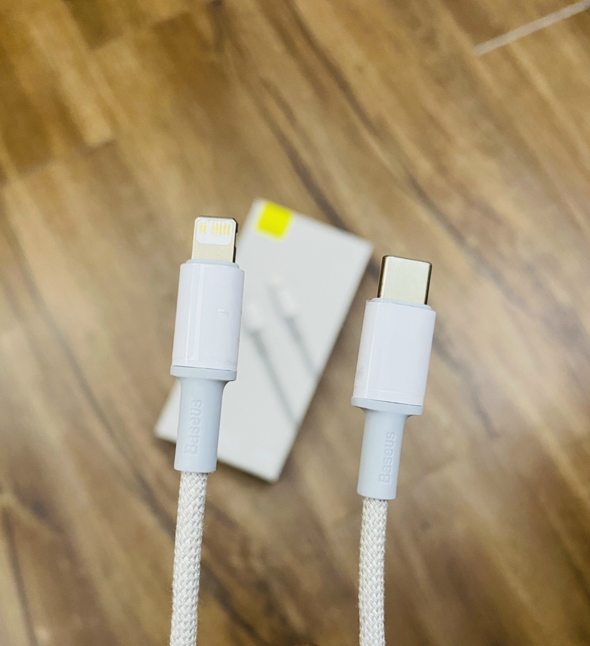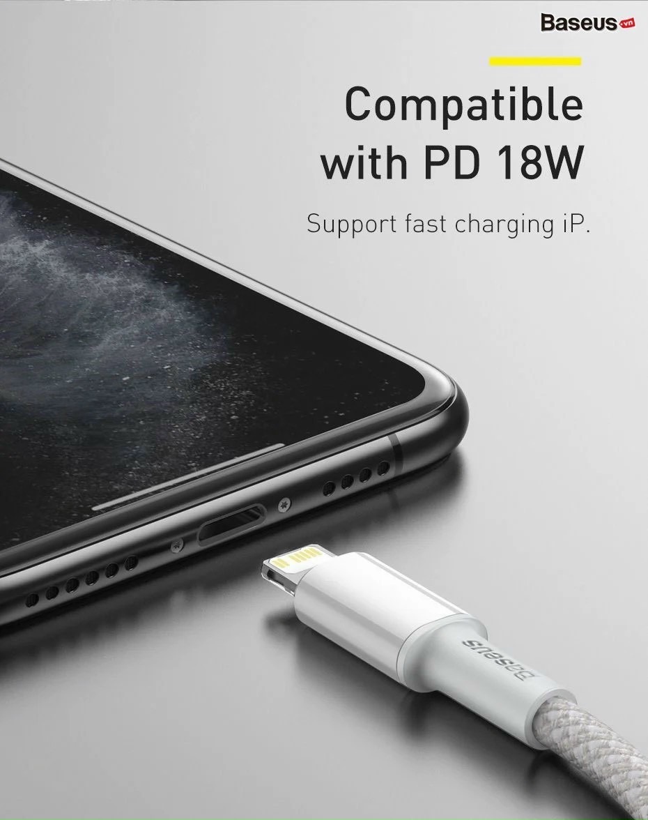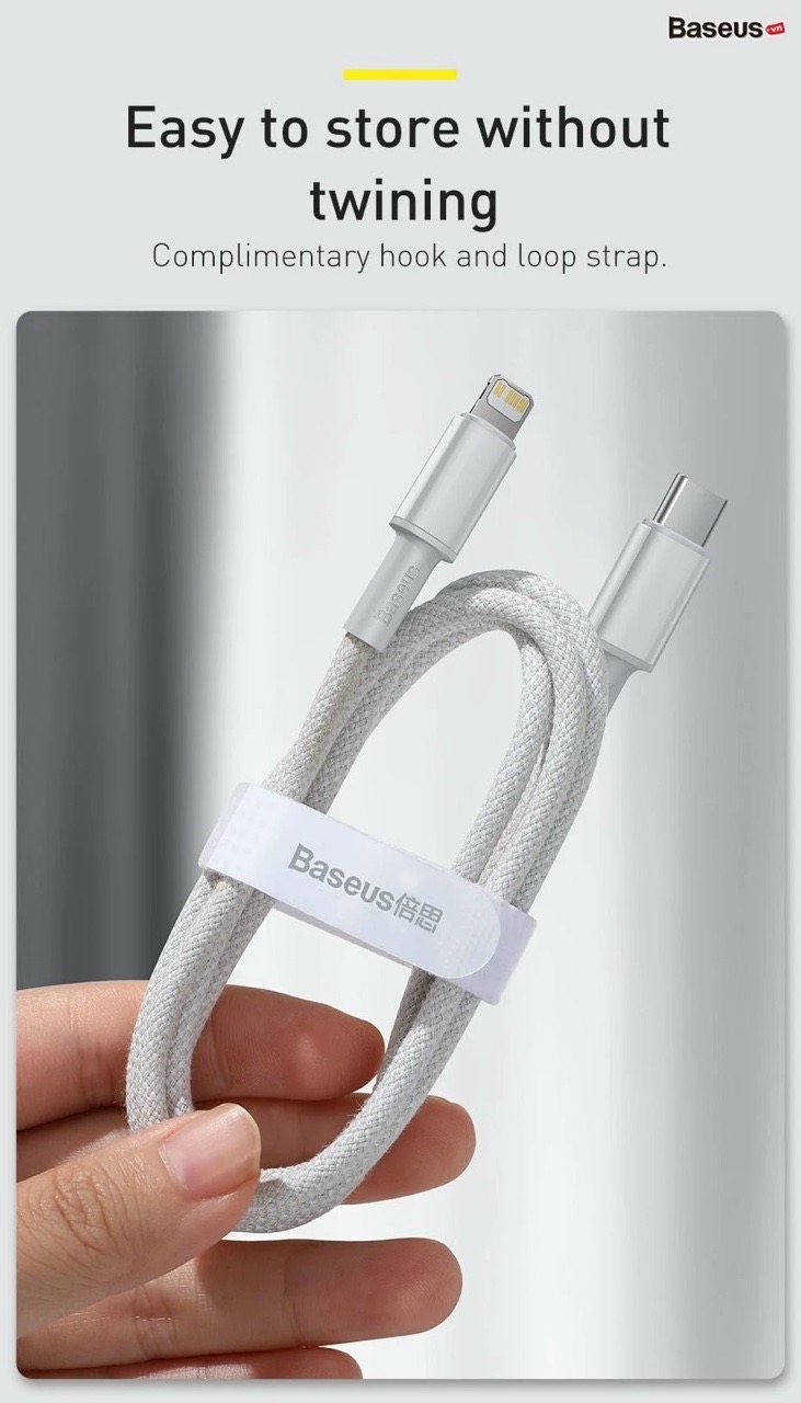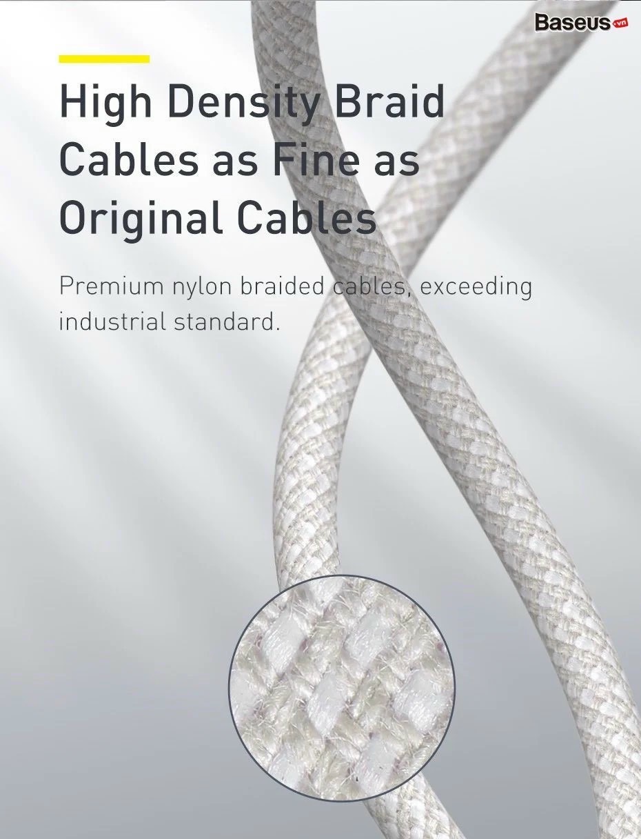 Cáp sạc nhanh Baseus High Density Braided Fast Charging Data Cable Type-C to iP PD 20W với phiên bản dây vải bện màu trắng đem lại phong cách sang trọng.