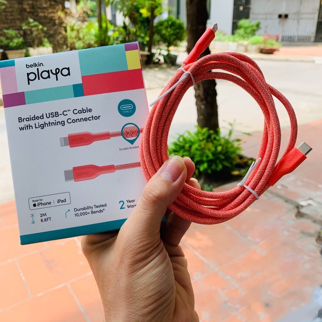 Với khả năng hỗ trợ sạc nhanh chuẩn PD từ cáp sạc này, bạn chỉ tốn ít thời gian để sạc đầy pin điện thoại của mình để có nhiều thời gian hơn để chat với bạn bè, phát video trực tuyến hoặc chia sẻ dữ liệu. Cáp USB-C to Lightning Belkin Playa này cho phép bạn sạc iPhone 8 trở lên từ 0 đến 50% chỉ trong 30 phút khi bạn ghép nối nó với bộ sạc USB-PD 18W trở lên. Lớp vỏ ngoài bằng nylon bện đôi giúp cáp tặng độ bền và chống rối hiệu quả.