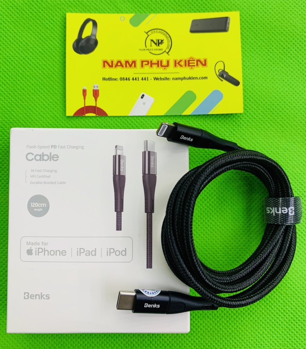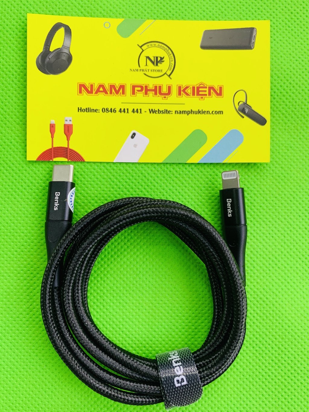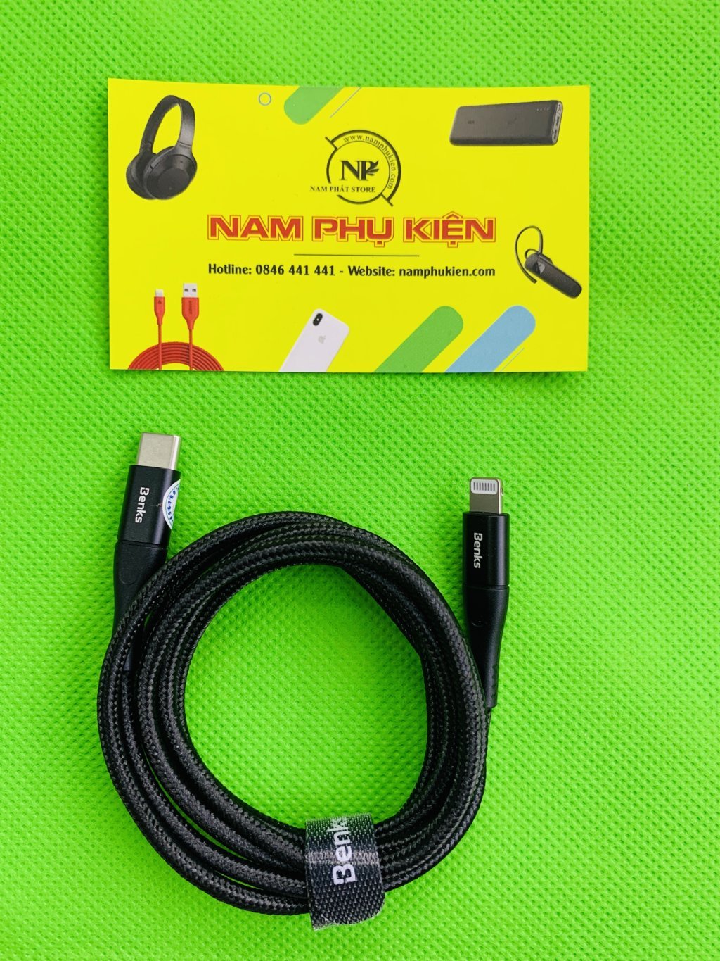 Cáp USB-C to Lightning Benks được làm bằng hợp kim nhôm bện dây dù nylon, được chứng minh trong môi trường phòng thí nghiệm để chịu được 10000 lần uốn.