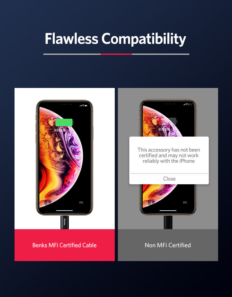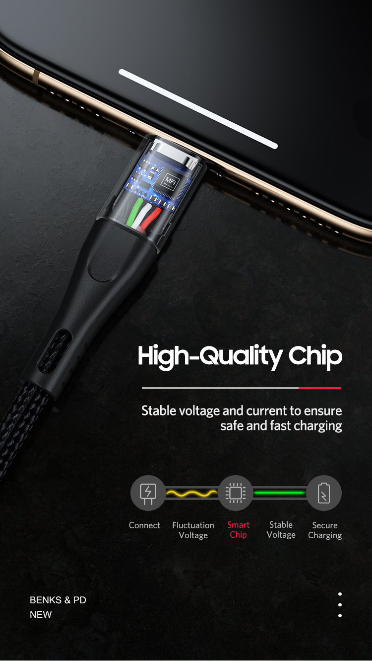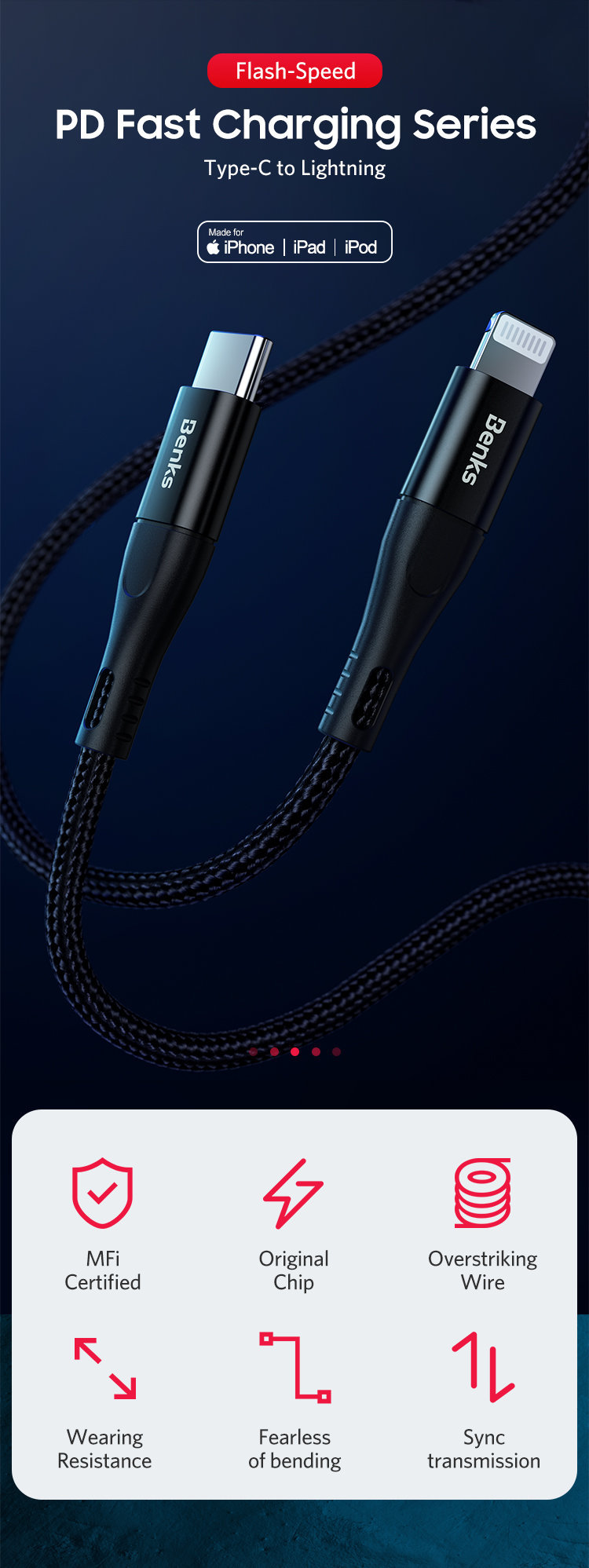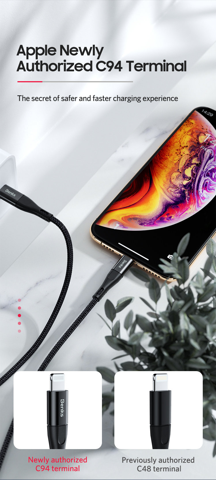 Cáp sạc nhanh Benks M17 USB-C to Lightning 18W PD chuẩn MFi Sạc an toàn ở tốc độ sạc nhanh nhất.