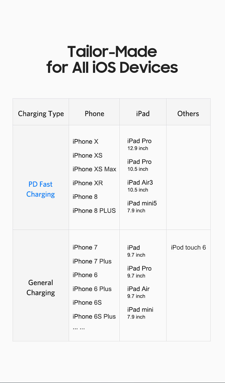 Tương thích rộng rãi(Sạc PD): Dành cho iPad Pro 12.9 "/ 10.5" iPhone XS Max / XS / XR / X / 8 Plus / 8