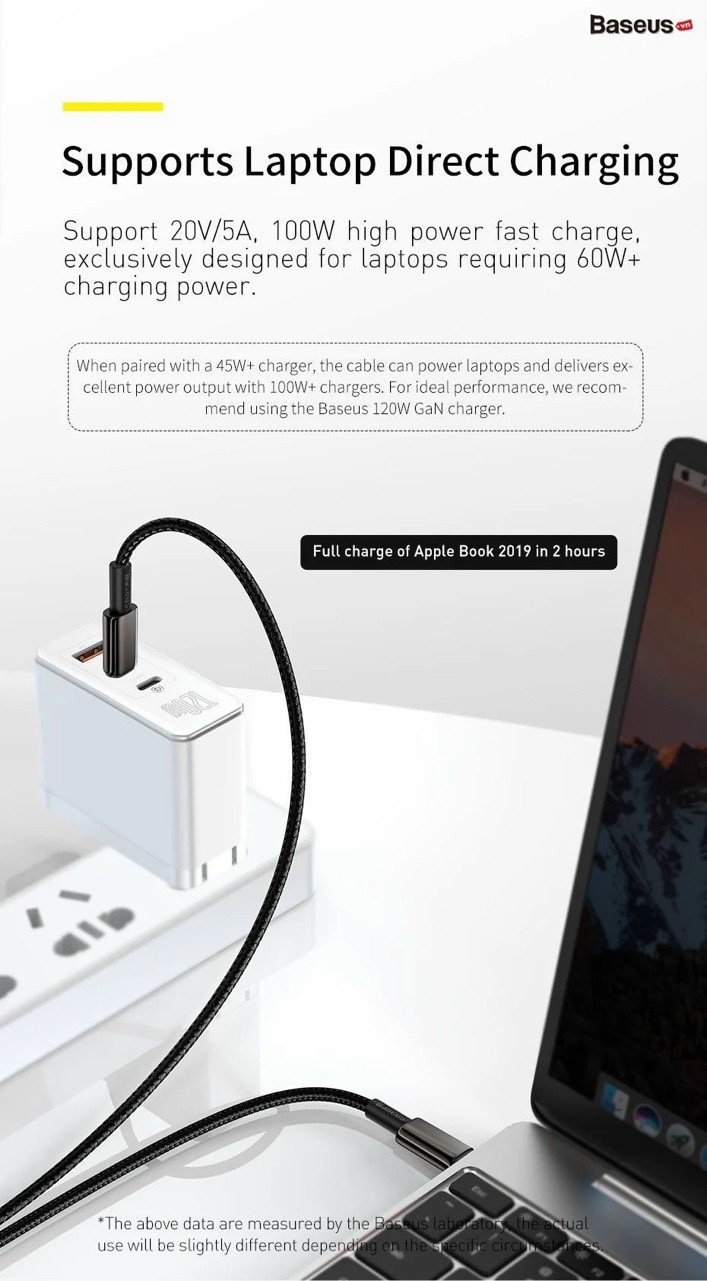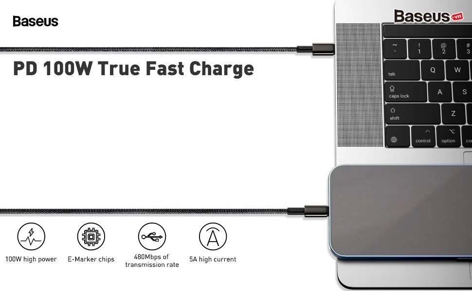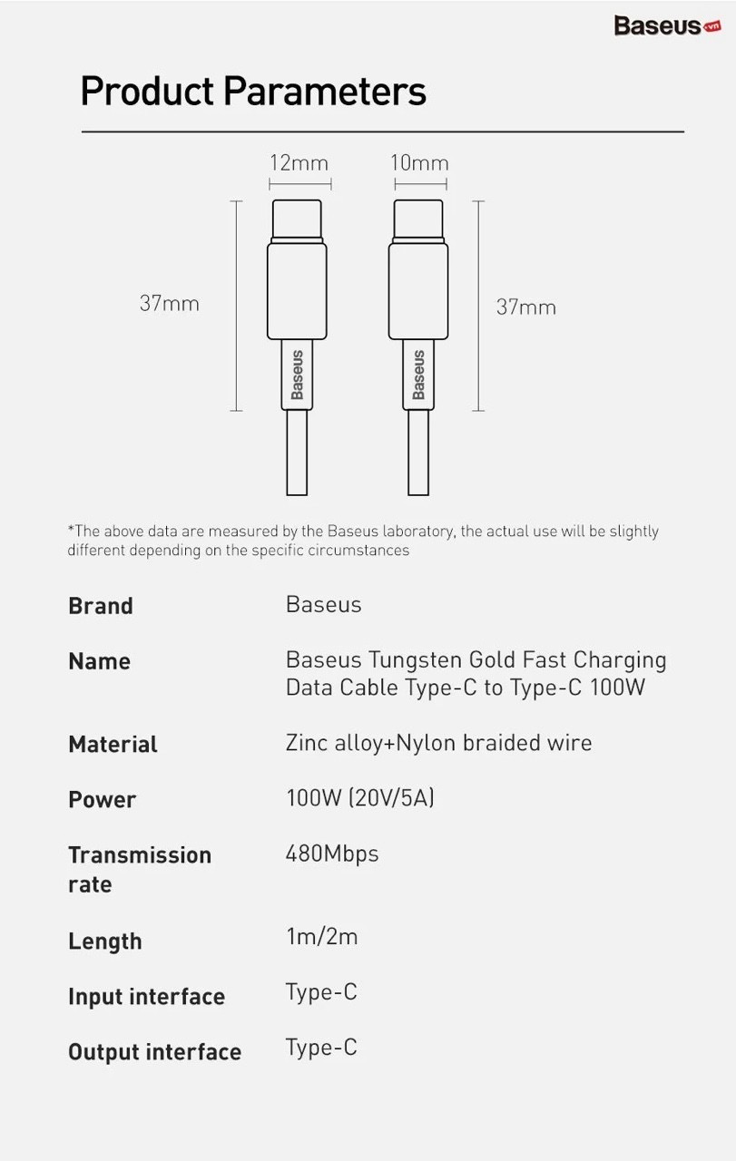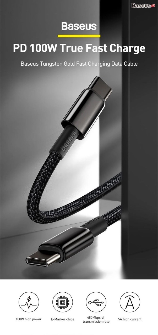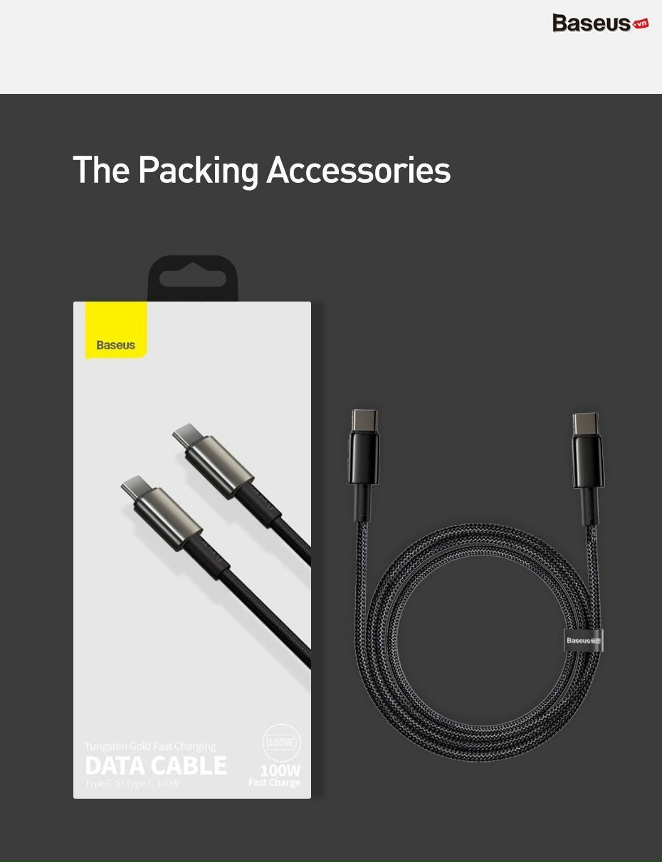 Cáp sạc nhanh C to C 100W Baseus Tungsten Gold Fast Charging Data Cable.