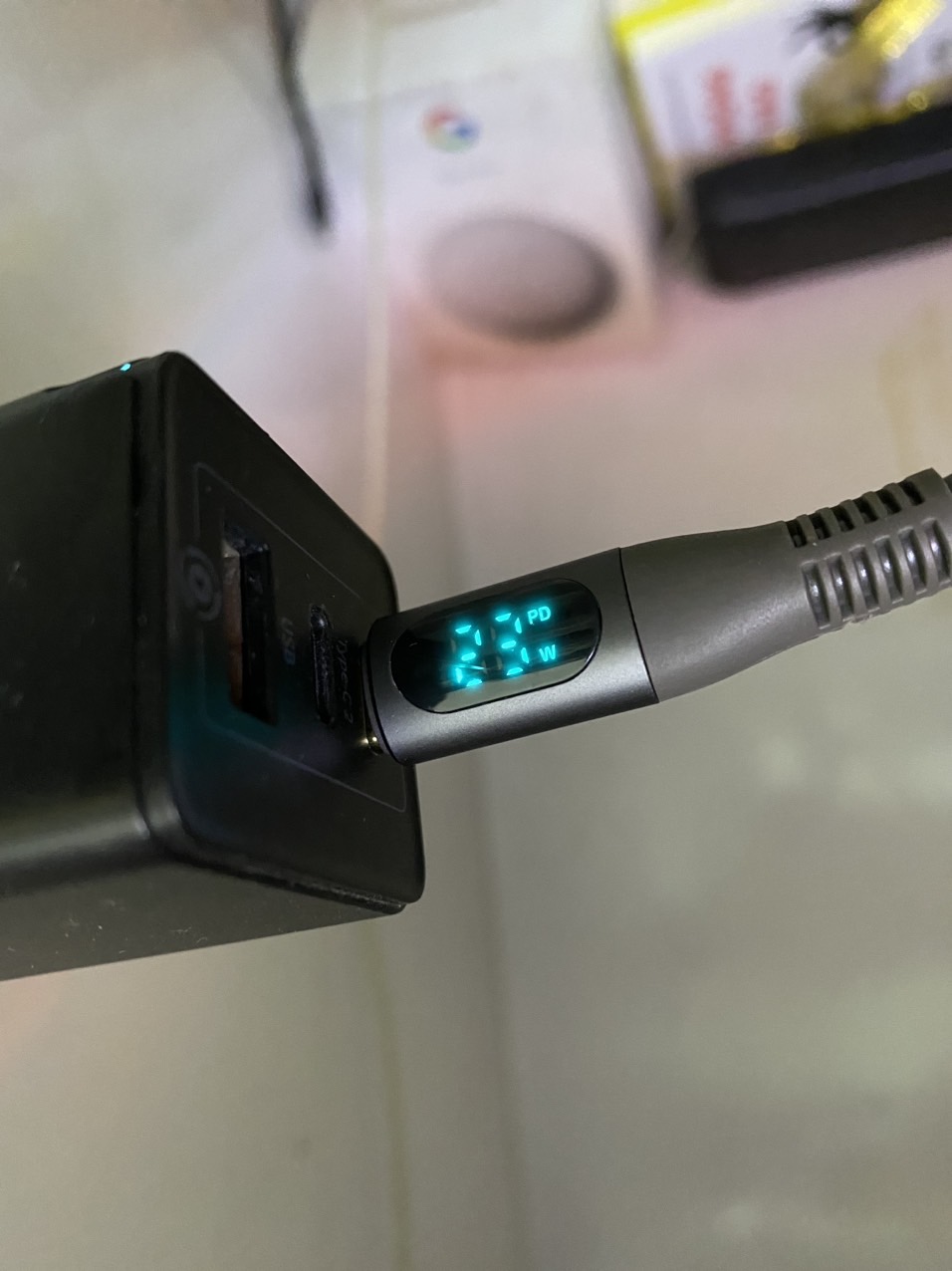 Chiếc cáp này còn được trang bị màn hình LCD ở chân cắm vào thiết bị, thiết kế này giúp người dùng có thể xác định được dòng điện đang được sạc cho thiết bị là bao nhiêu. Có thể nói, điều này cực kỳ thuận tiện cho việc sử dụng cáp vào thời điểm buổi tối, vì bạn có thể dễ dàng thao tác cắm sạc khi cần thiết.