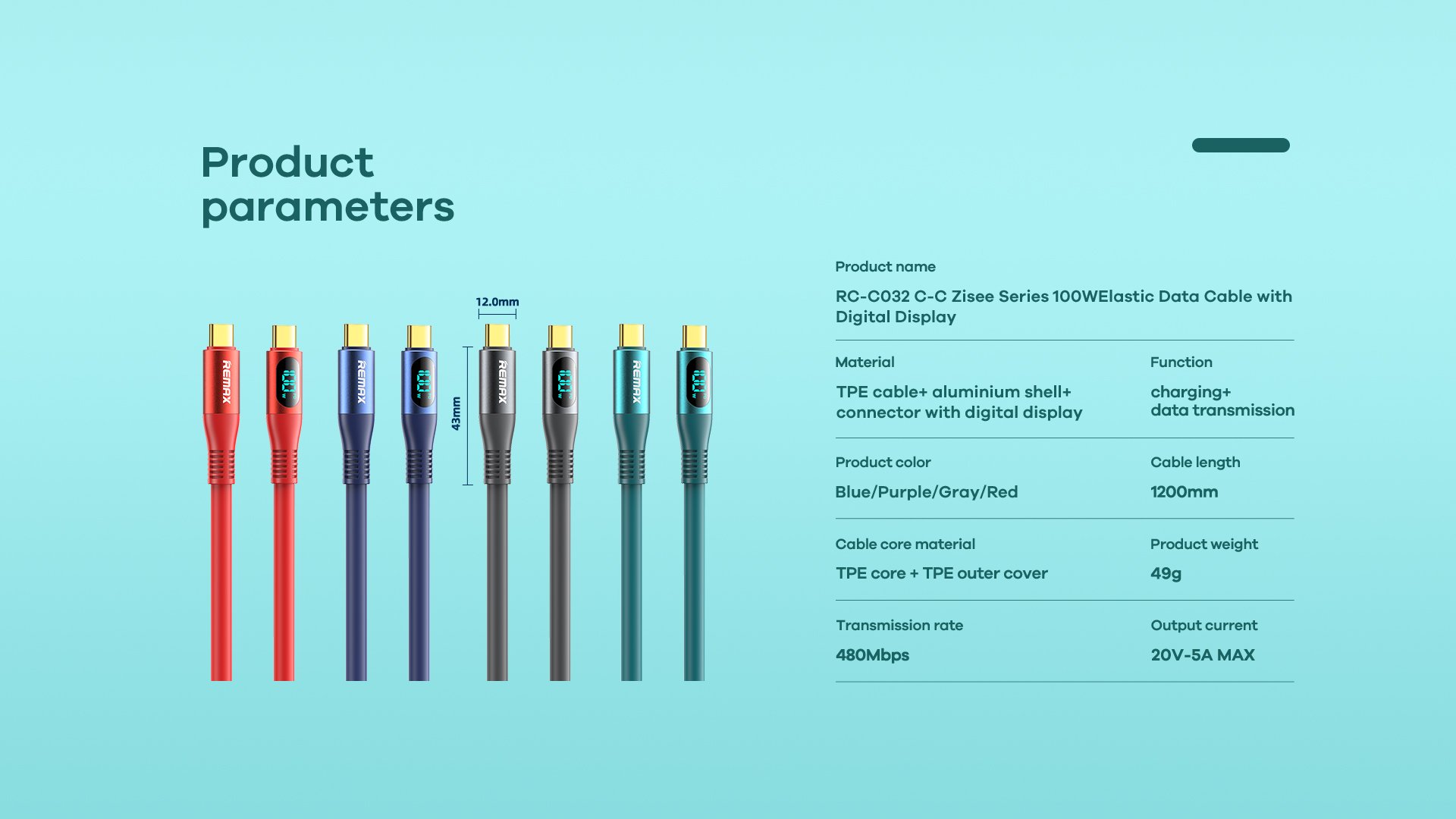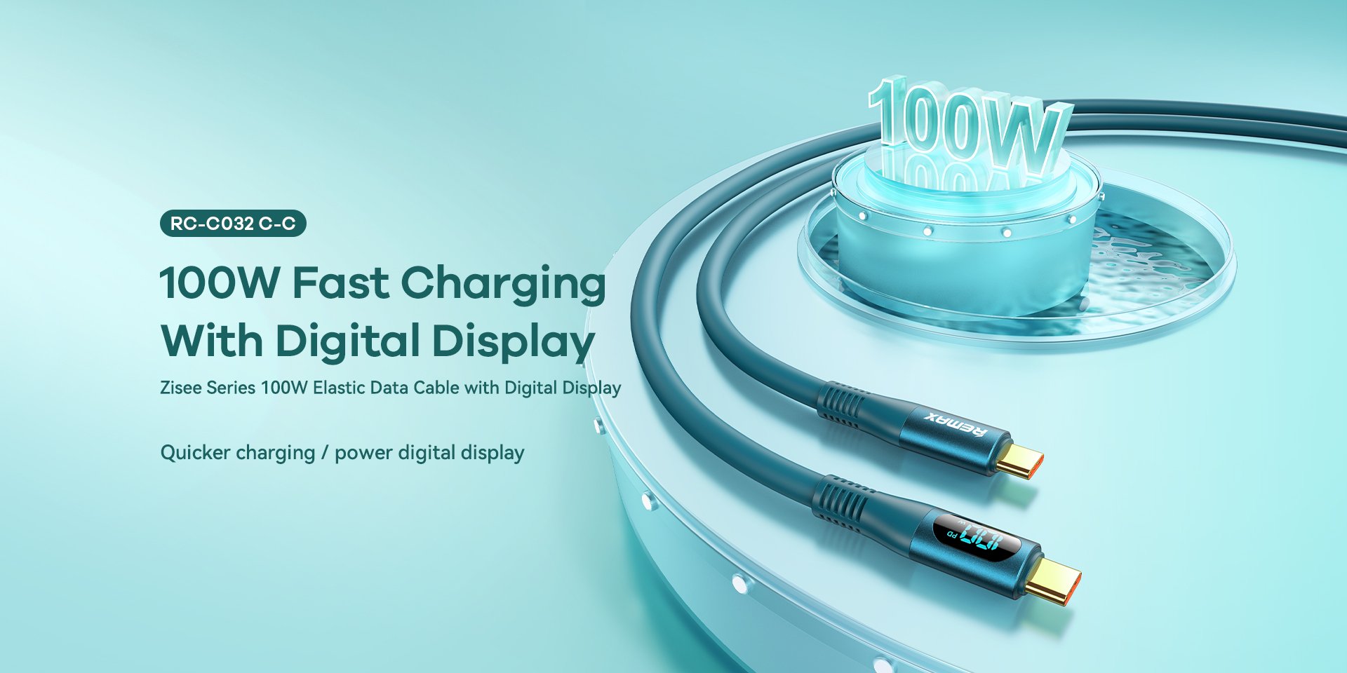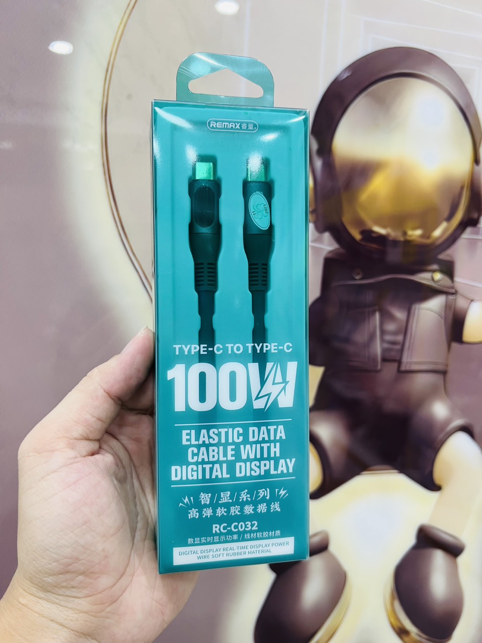 Cáp sạc nhanh 100w REMAX RC-C032 Type C ra Type C PD có màn hình led LCD báo dòng chính hãng (cáp 2 đầu type-c)