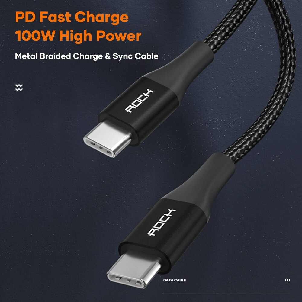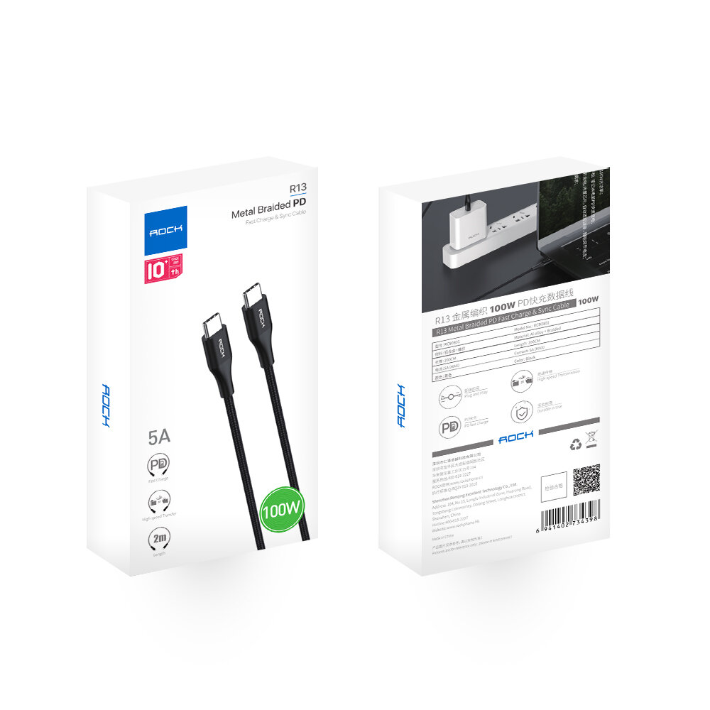 ROCK R13 100W USB-C to USB-C PD Cable PD3.0 Power Delivery Data Transfer Cord Line For Samsung Galaxy Note 20 S20 Huawei P40 Xiaomi Mi 10 Note 9s For iPad Pro 2020 MacBook Air 2020 200cm