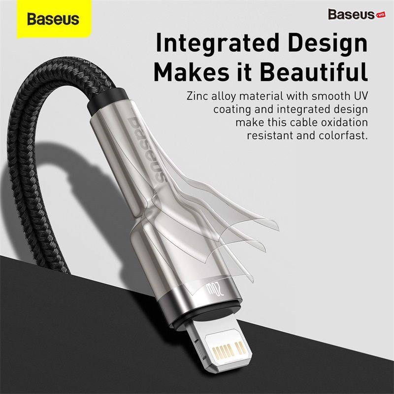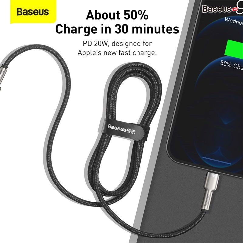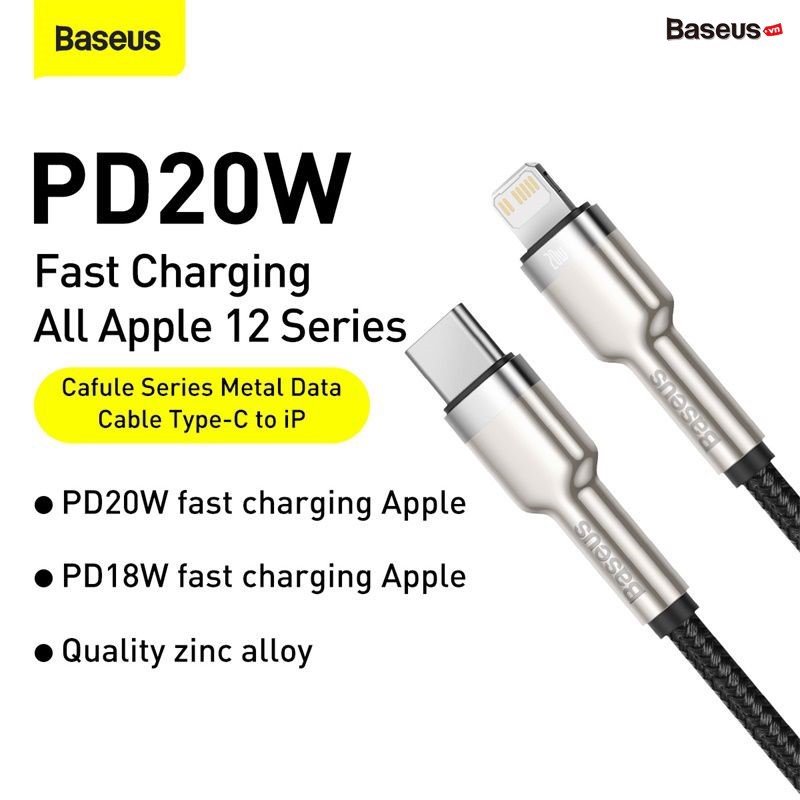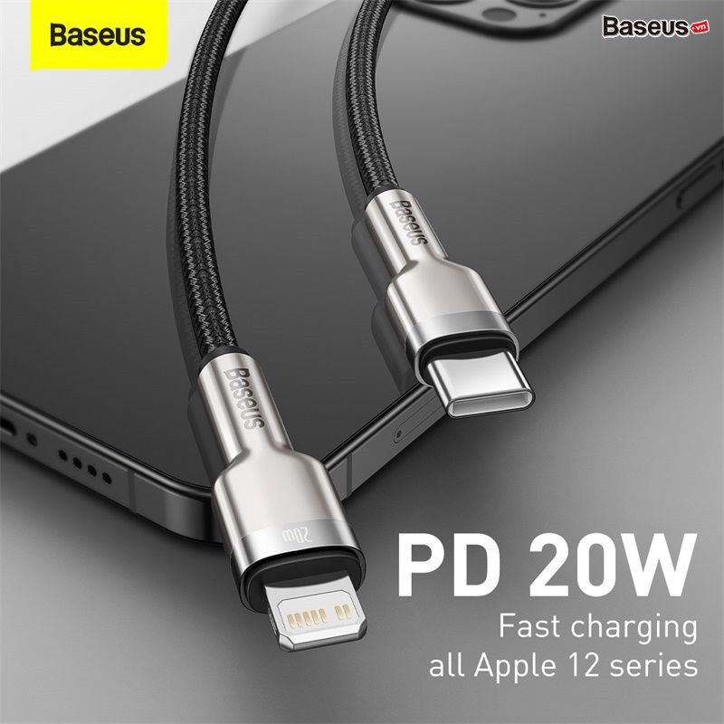 - Cáp sạc nhanh Baseus Cafule Metal Series 20W là thế hệ cáp sạc C to Lightning mới nhất của Baseus.