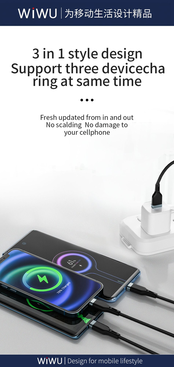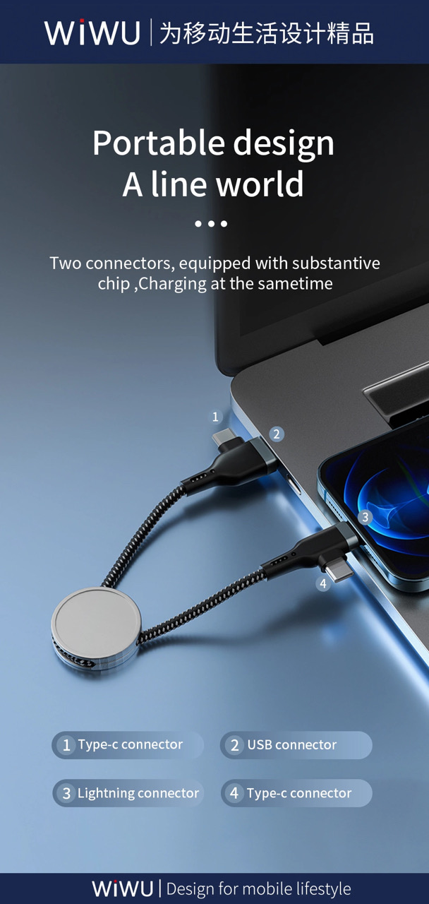 Cáp sạc nhanh đa năng WIWU PT06 4 in 1 USB to USB-C / Type-C to Type-C / USB C to Lightning / USB ligntning + 8 Pin Platinum Data Cable 20W PD.