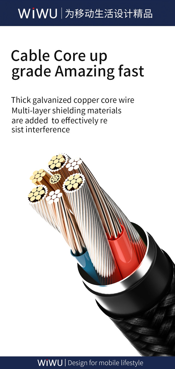 5. Dây lõi đồng đóng hộp dày, chống nhiễu hiệu quả, cải thiện tốc độ sạc.