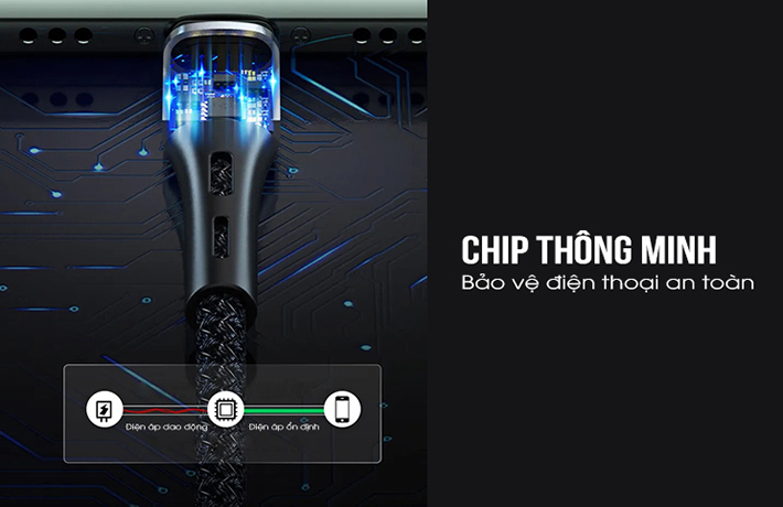 Việc trang bị chip thông minh, có thể nhận diện được thiết bị sạc giúp cho cáp có thể điều chỉnh được nguồn ra phù hợp. Từ đó, việc sạc sẽ an toàn và đảm bảo hơn rất nhiều.