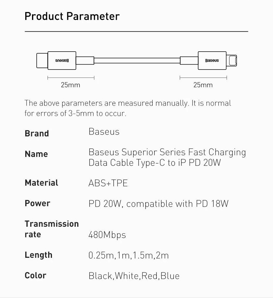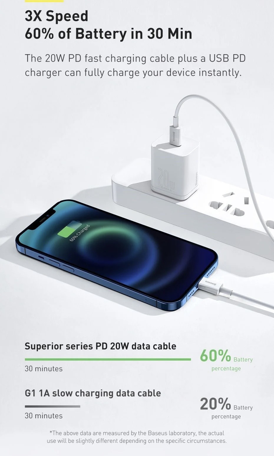 Hình ảnh chi tiết Cáp sạc nhanh siêu bền C to Lightning Baseus Superior Series PD 20W cho iPhone 12/11 Series