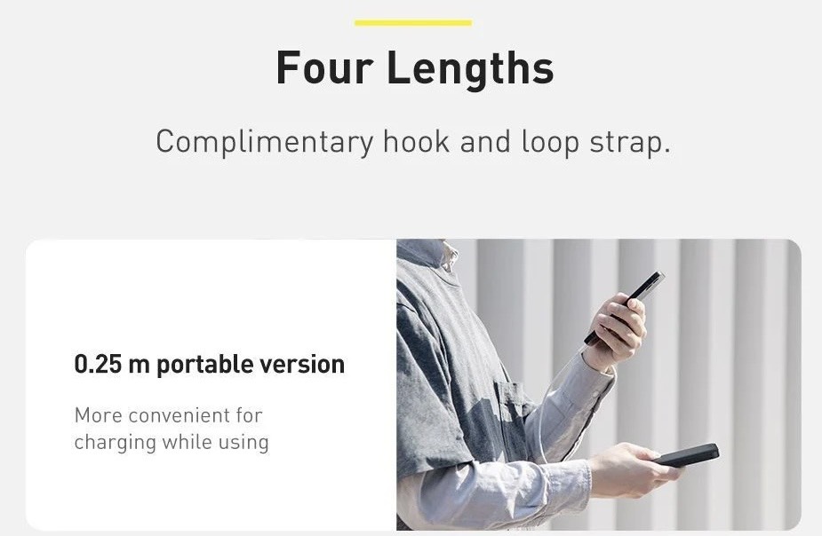 - Dây ngắn 25CM tiện lợi dùng cho sạc dự phòng, bỏ vào túi quần áo, túi xách.