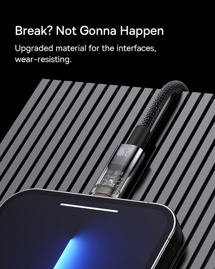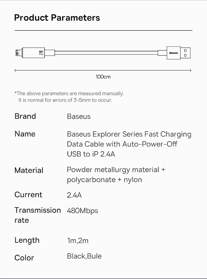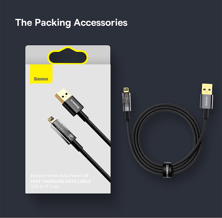 Hình Ảnh Chi Tiết Sản Phẩm Cáp Sạc Lightning Tự Ngắt Gen2 Baseus Explorer Series dùng cho iPhone (USB to Lightning, Auto Power-Off, 2.4A Fast Charging & Data Cable)