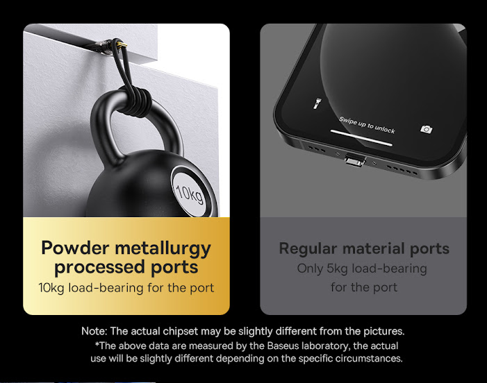 - Đầu cáp được làm bằng kim loại cao cấp, chắc chắn, chống hiện tượng gảy đầu cáp. Các tiếp điểm được thiết kế lại đảm bảo tiếp xúc và tương thích tốt hơn . Dây cáp được bọc vải dù siêu bền , chống đứt gảy cho thời gian sử dụng cực lâu và ổn định.