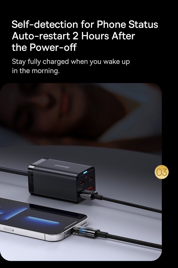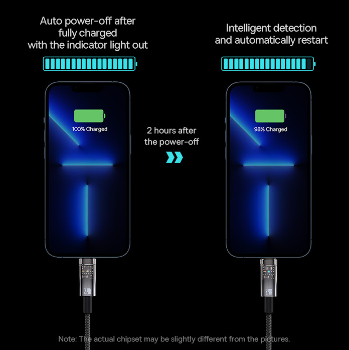 Self-Detection: Sau khoảng 2 giờ kể từ khi ngắt hoàn toàn dòng sạc, Cáp sạc Baseus Explorer Series sẽ tự động kết nối sạc lại.