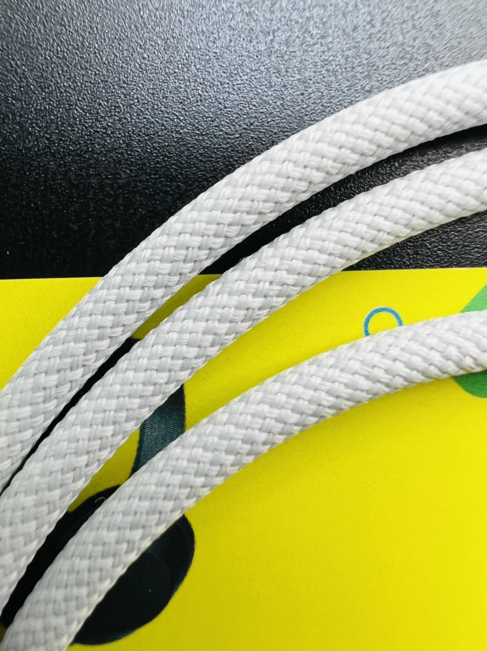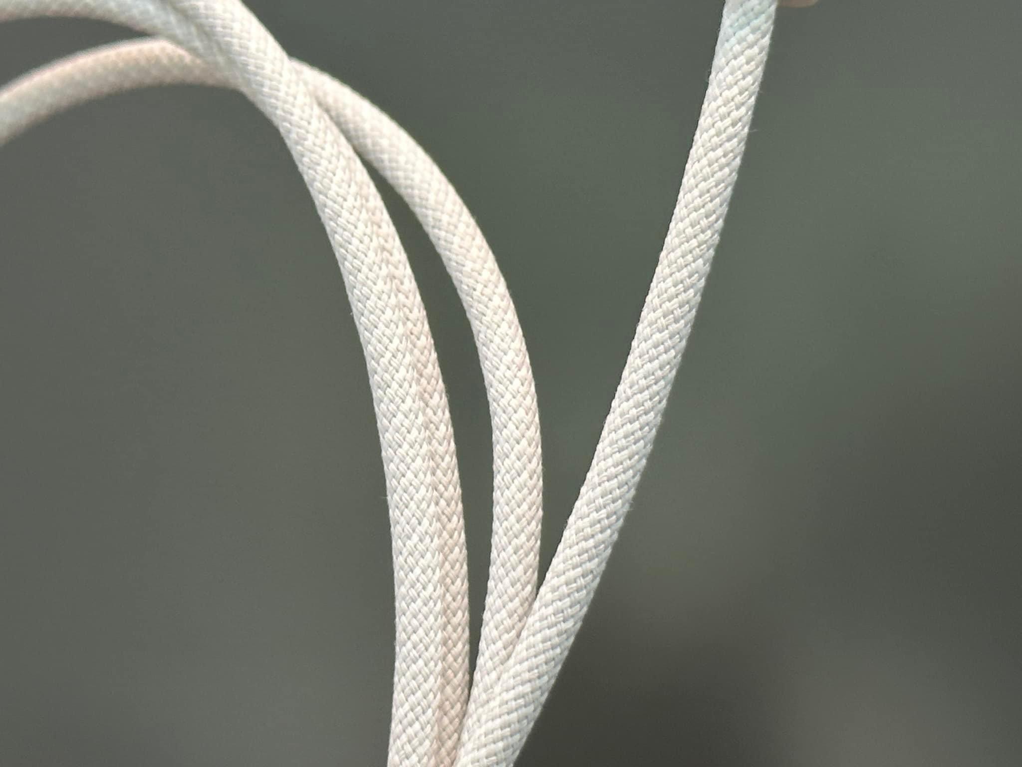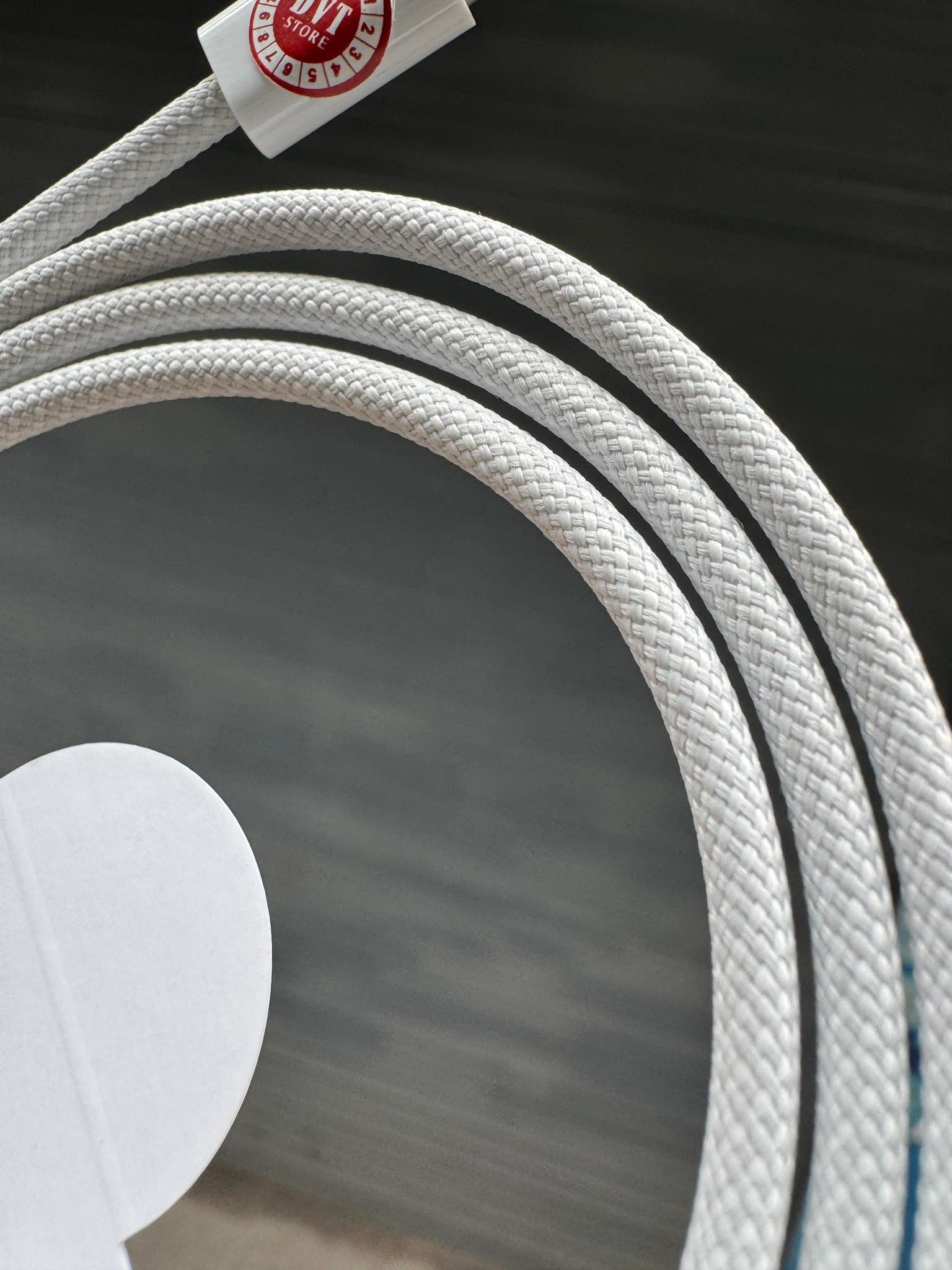 Khác với các sợi cáp Apple được ra mắt trước đó thường sử dụng chất liệu nhựa màu trắng thì cáp iMac M1 đặc biệt được bọc lớp vải dù vô cùng bền bỉ. Vật liệu này không chỉ cho độ bền cao hơn mà còn mang đến tính thẩm mỹ và vẻ ngoài cao cấp hơn cho sợi cáp. Hơn nữa, lớp ngoài bọc dù đi kèm thiết kế dạng tròn còn giúp sợi cáp hạn chế được nứt, gãy, chịu lực tốt hay đổi màu sau thời gian dài sử dụng.