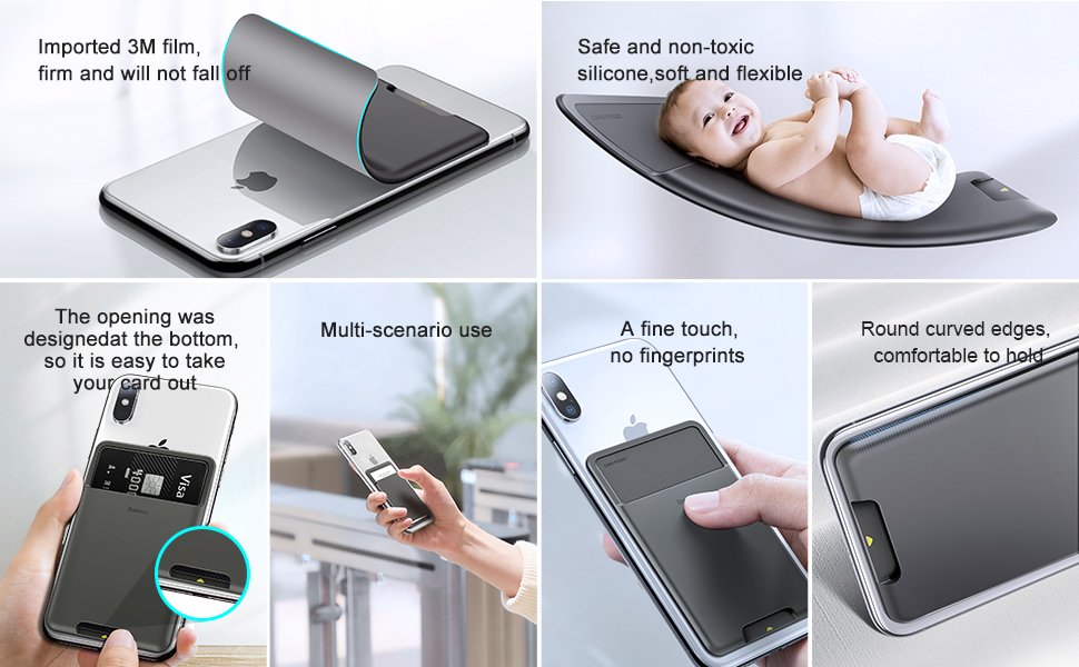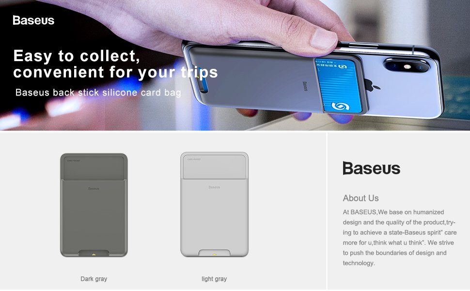 Hình ảnh chi tiết Case đựng thẻ siêu mỏng dùng gắn lưng điện thoại BaseusBack Stick Silicone Card Bag (92 x 60mm)