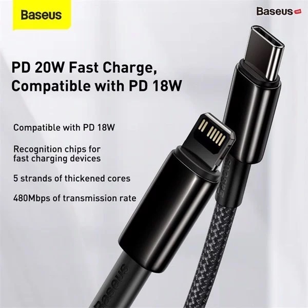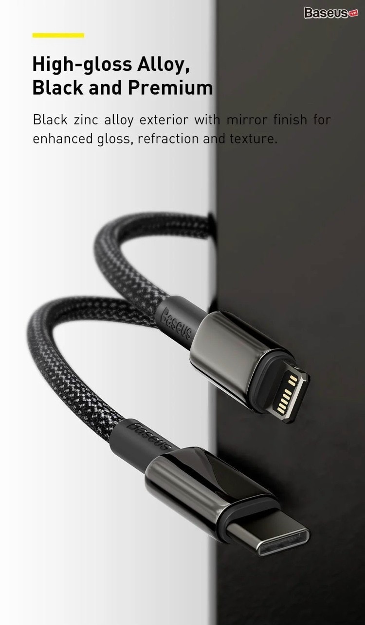 1. Cáp sạc nhanh Baseus Tungsten Gold 20W là thế hệ cáp sạc C to Lightning mới nhất của Baseus.